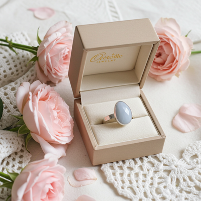 Moonlit Glow – Silver Blue Opal Ring - Size 7