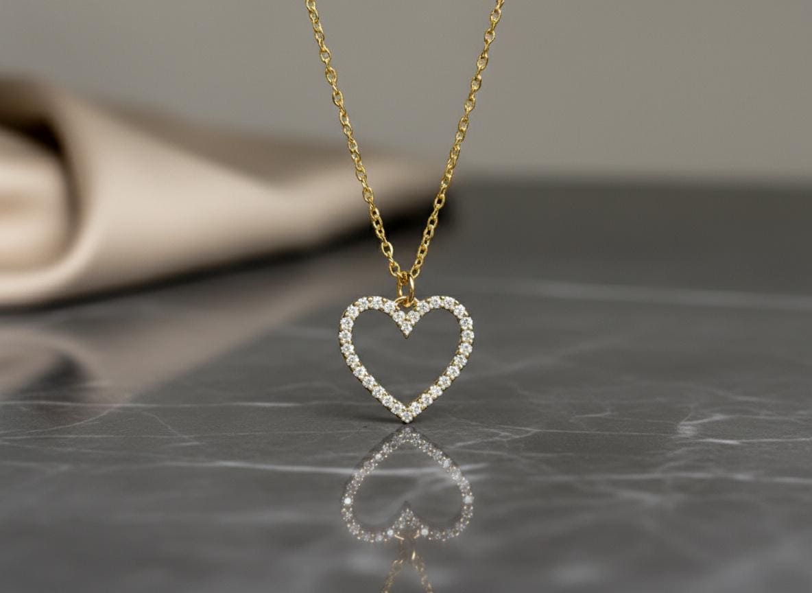 Indulge in timeless elegance with our exquisite 14k Gold Heart Pendant. Measuring a perfect 1.5 x 1.5 cm, this stunning piece is meticulously crafted to capture the essence of love and luxury. The heart-shaped pendant is adorned with 32 brilliant 0.01ct lab-grown moissanite stones, each precisely set to enhance its sparkling beauty.