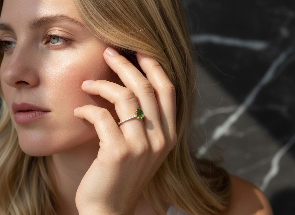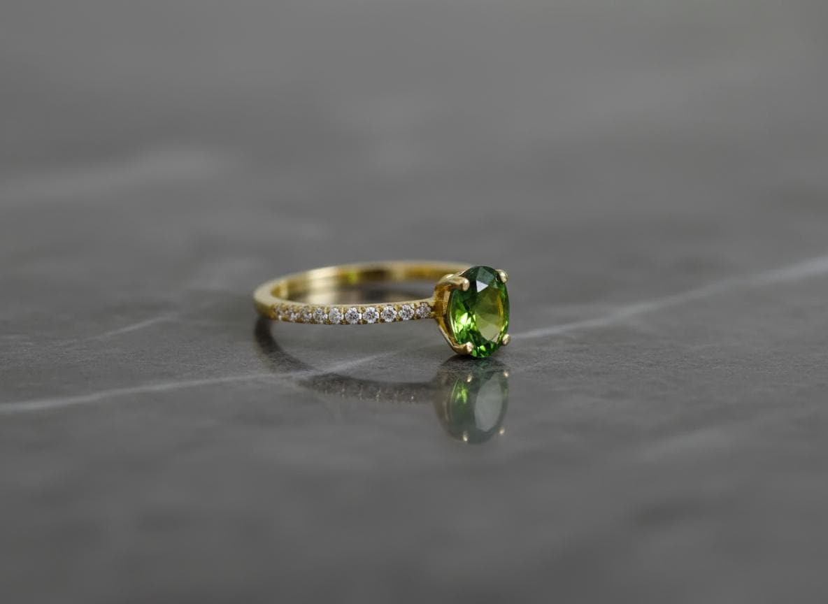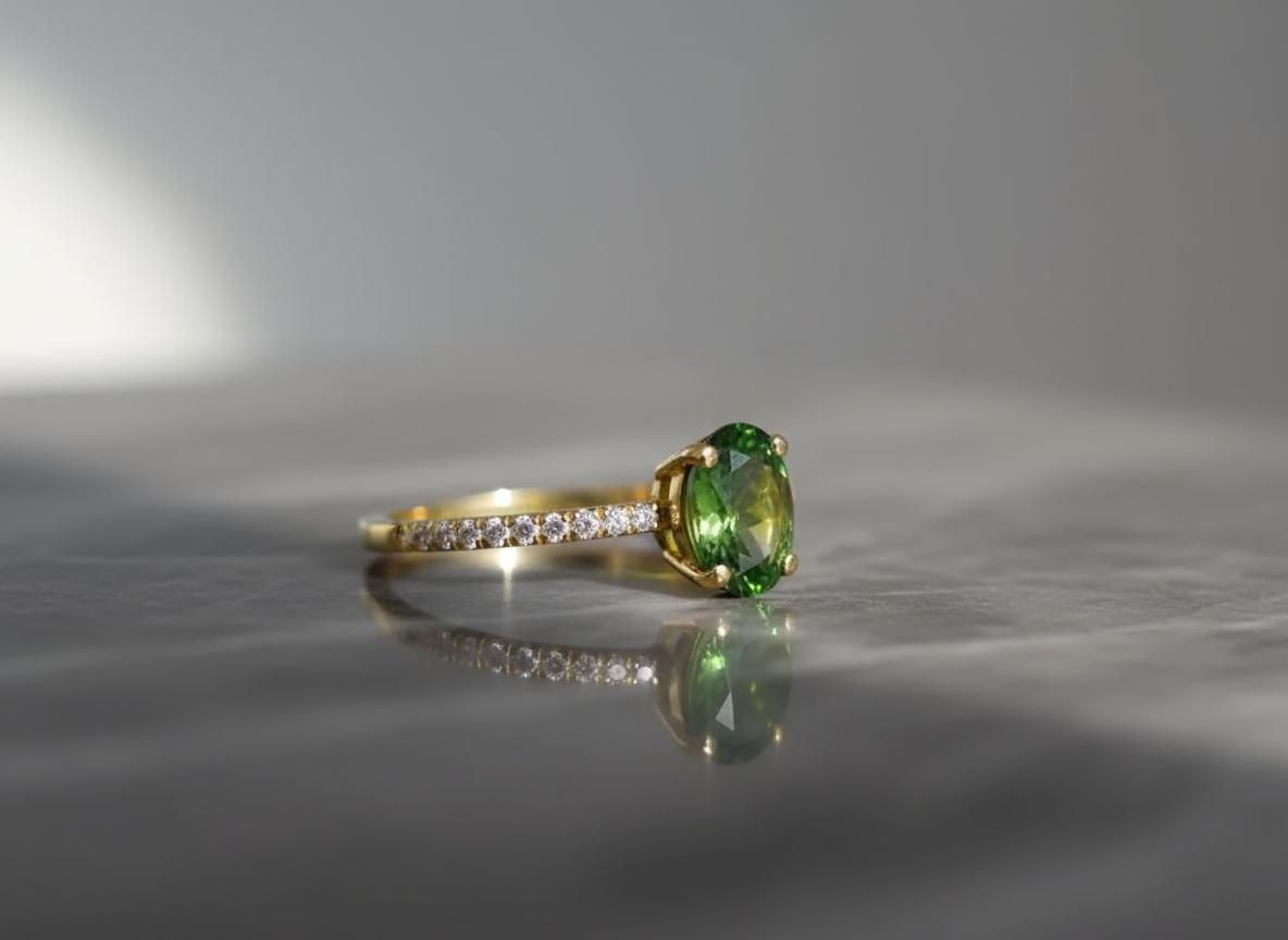 Perfect as an engagement ring, anniversary gift, or special occasion piece, this ring blends vibrant color with refined brilliance. Green apatite, with its rich forest-green hue, is believed to inspire growth, clarity, and positive energy, making it not only beautiful but also meaningful.