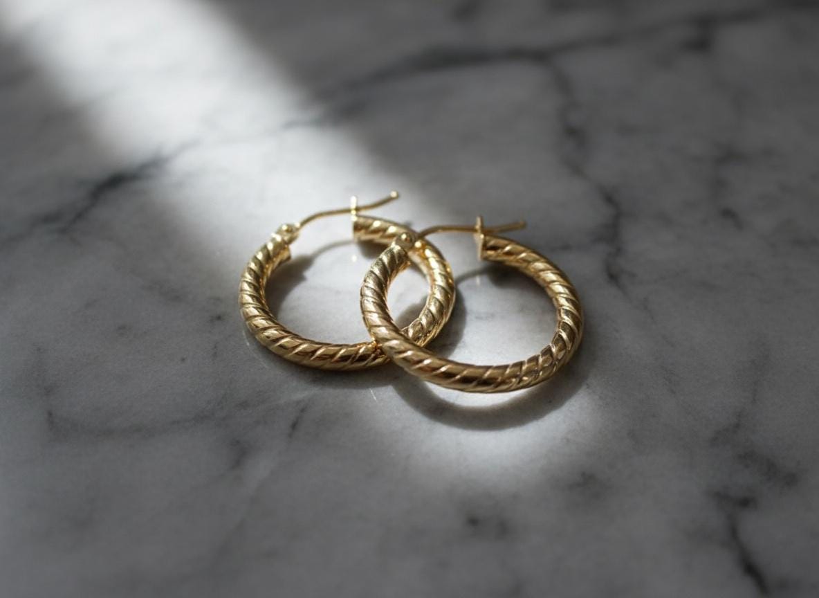 Crafted from high-quality 14k gold, these hoops are designed for both beauty and durability. The twisted spiral design not only adds texture but also creates a striking visual effect, making these earrings a versatile addition to your jewelry collection.