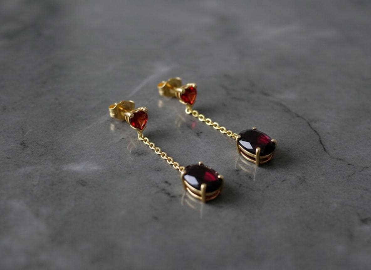 Crafted from high-quality 14k gold, these earrings are perfect for those who appreciate both beauty and craftsmanship. The deep red garnet stones symbolize love and passion, making these earrings not only a striking accessory but also a meaningful gift.
