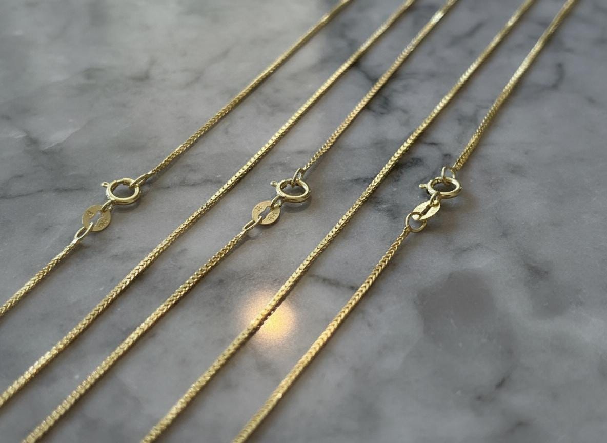◊ Whether you're looking for the perfect chain to pair with a cherished pendant or a delicate piece to wear on its own, this 14k gold Spiga chain offers the perfect blend of elegance and simplicity. Each chain is crafted with care, ensuring you receive a piece that’s both beautiful and durable.