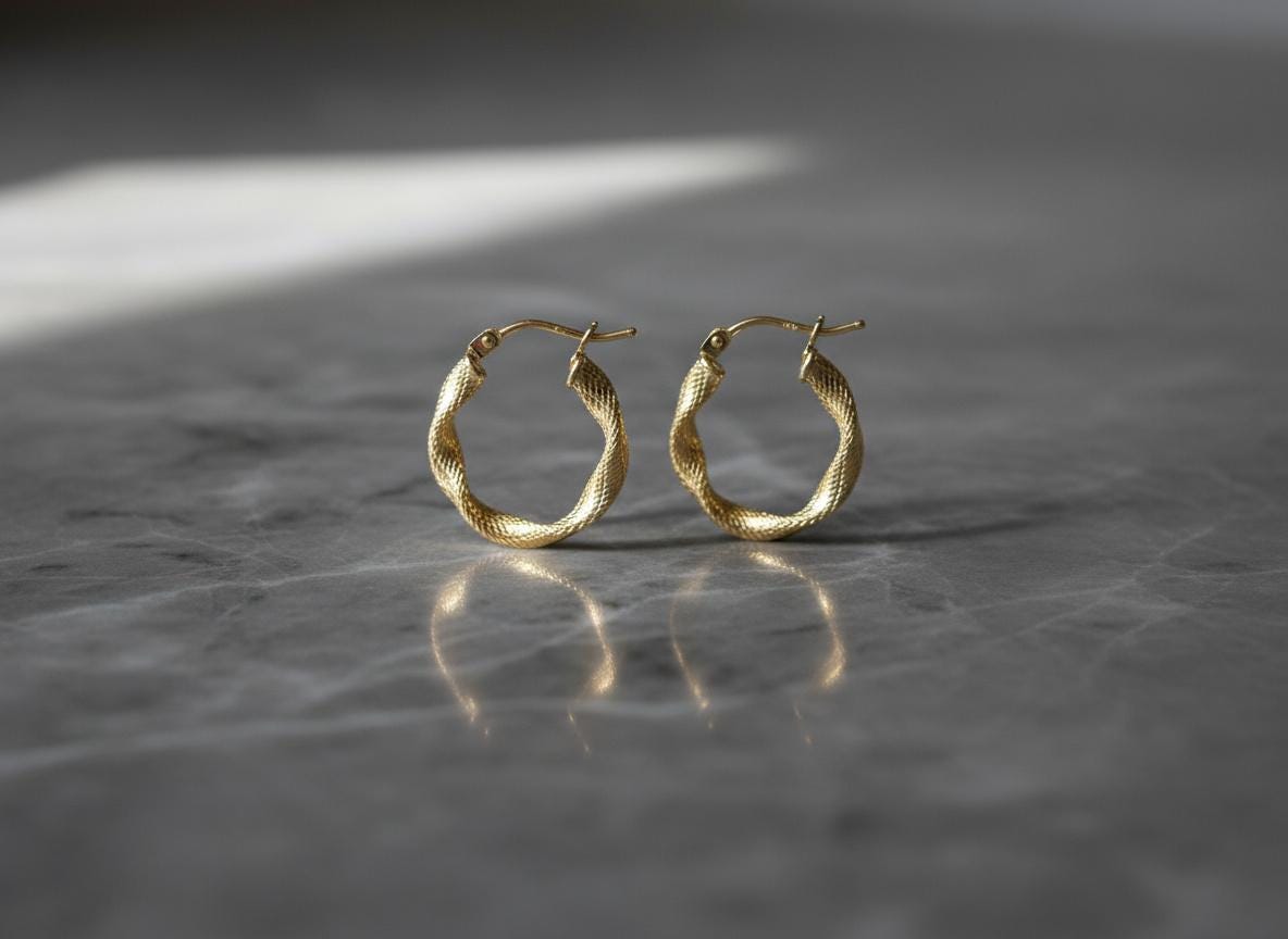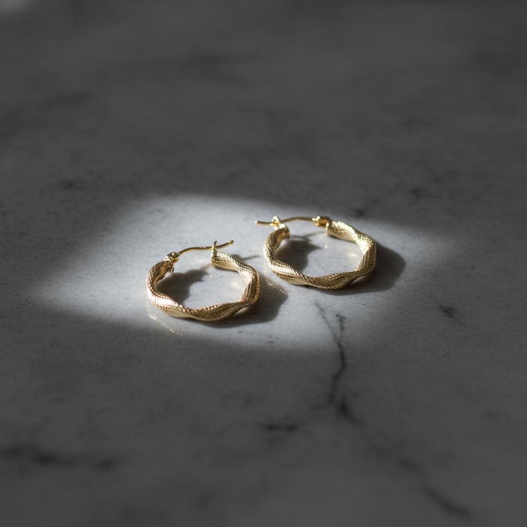 Crafted from high-quality 14k gold, these hoops are designed for both style and durability. The twisted texture adds an interesting visual element, making these earrings a standout piece in any jewelry collection.