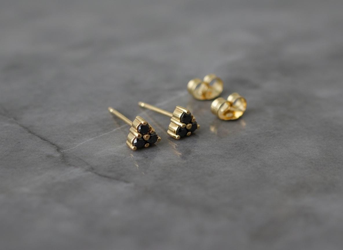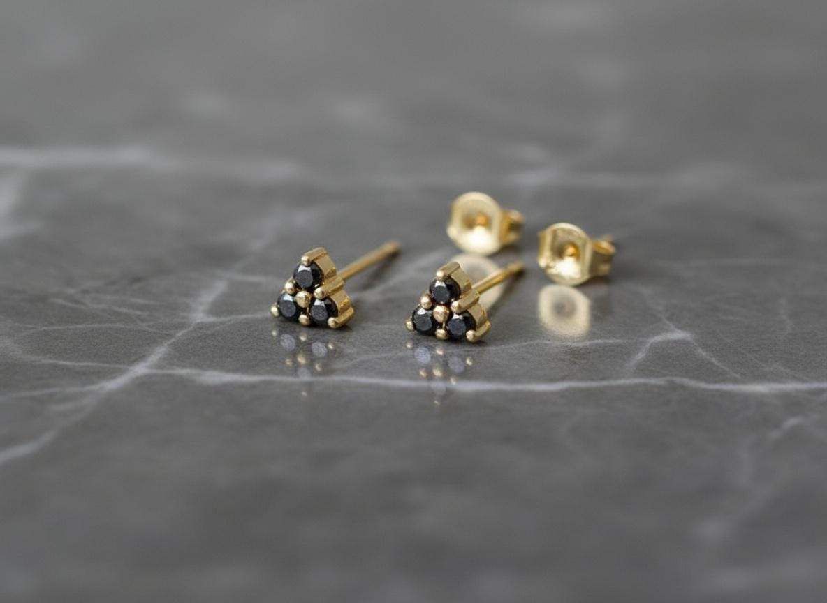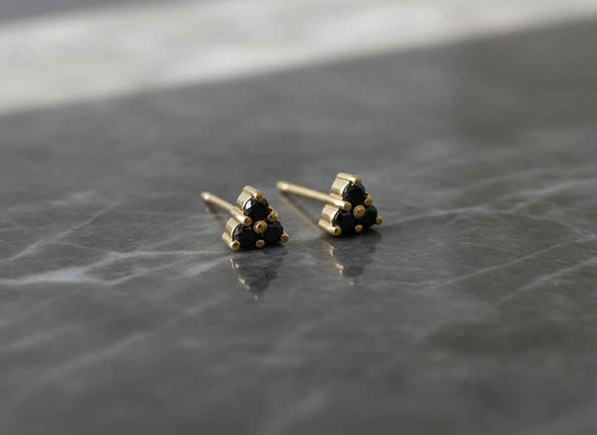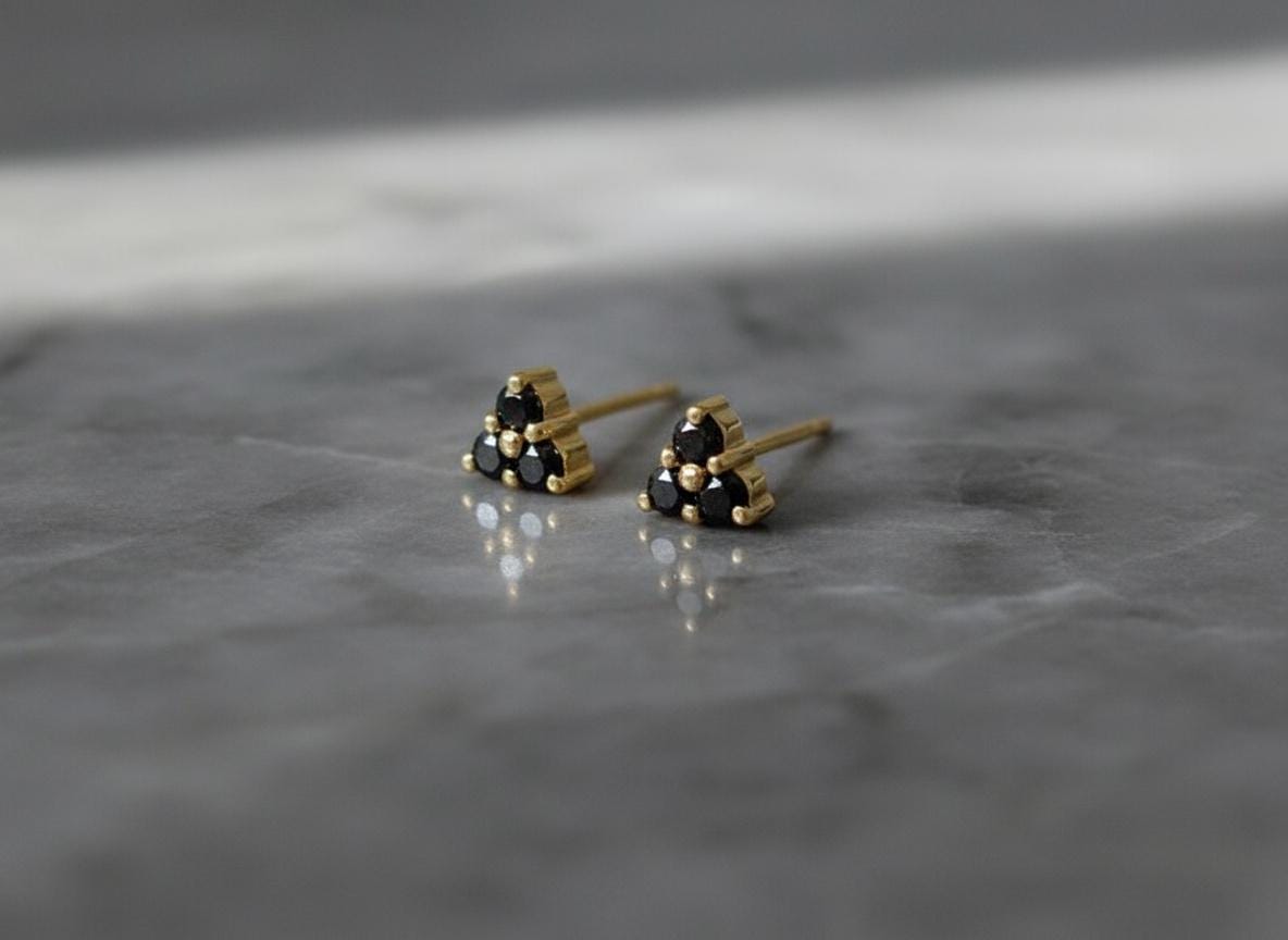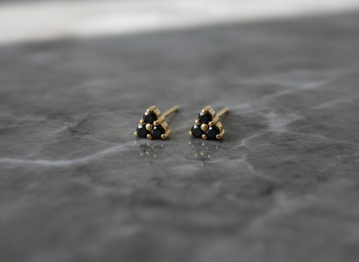 These black diamond triangle studs are refined, rebellious, and endlessly wearable — a unique staple for every jewelry box.