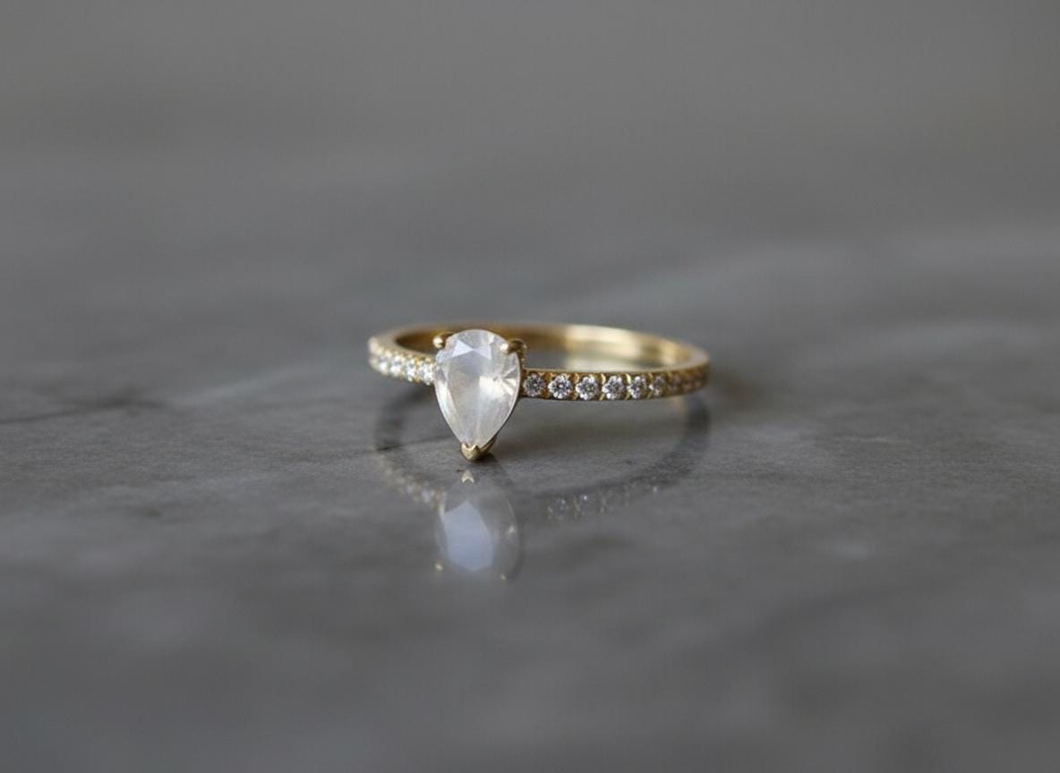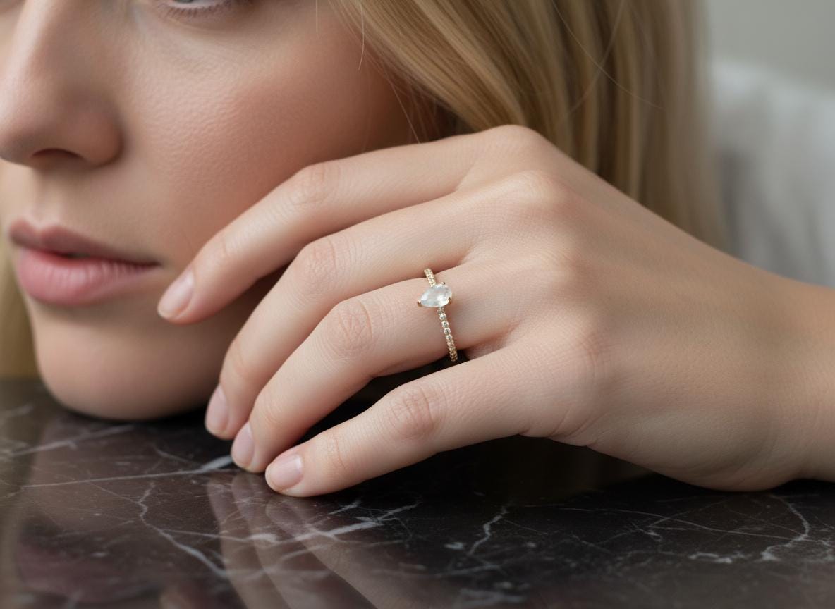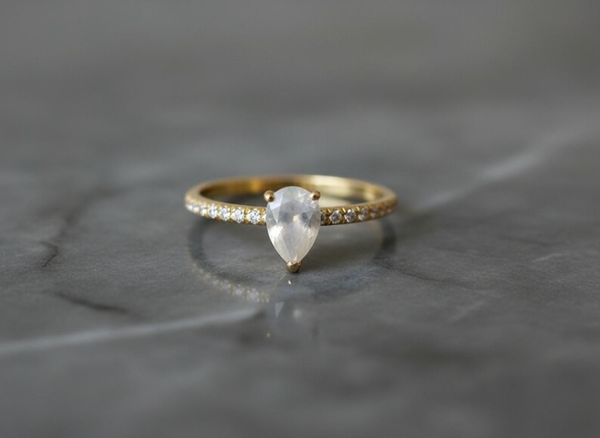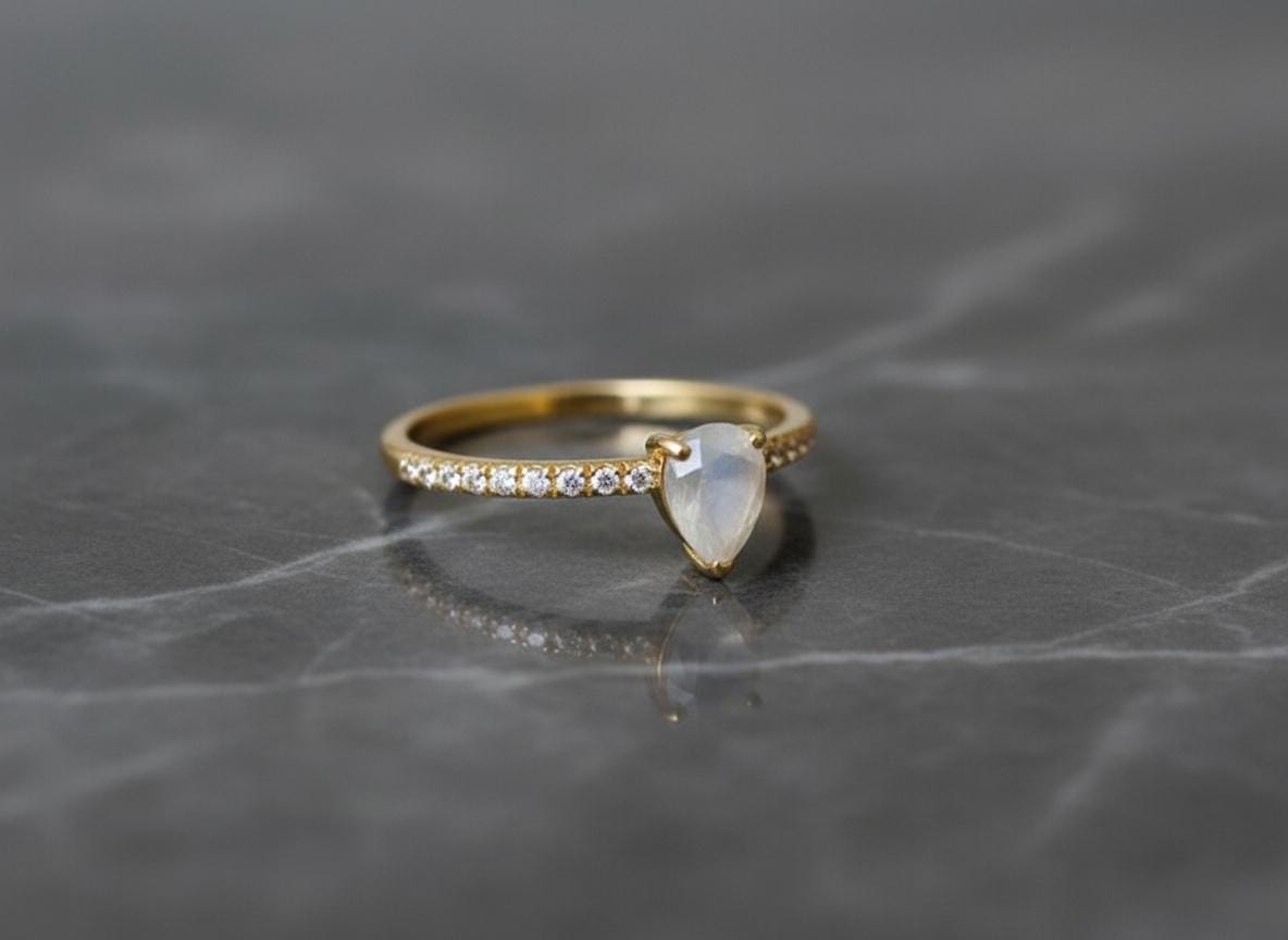 This pear moonstone ring is like wearing a sliver of moonlight — pure, graceful, and glowing with quiet magic. ✨