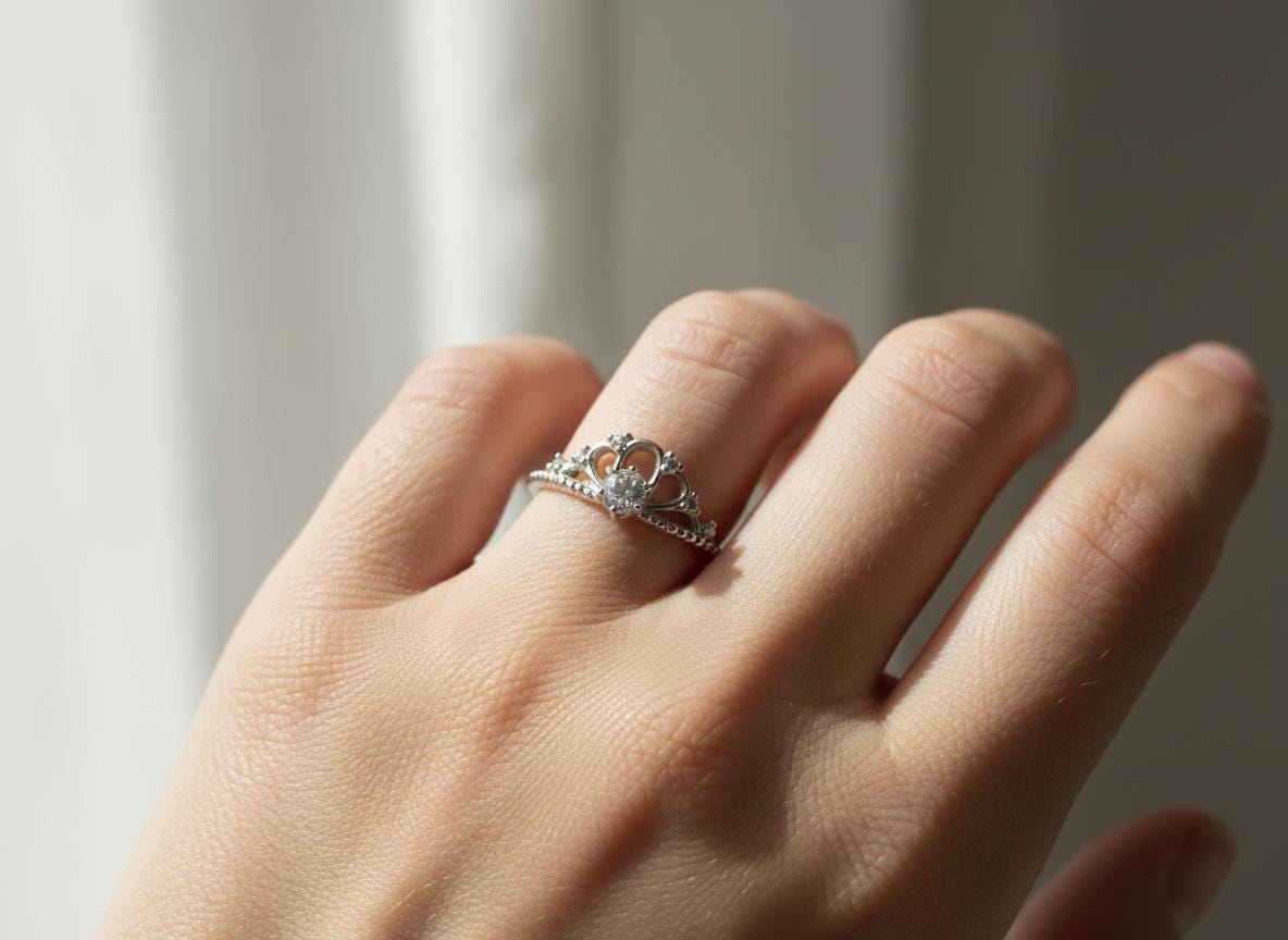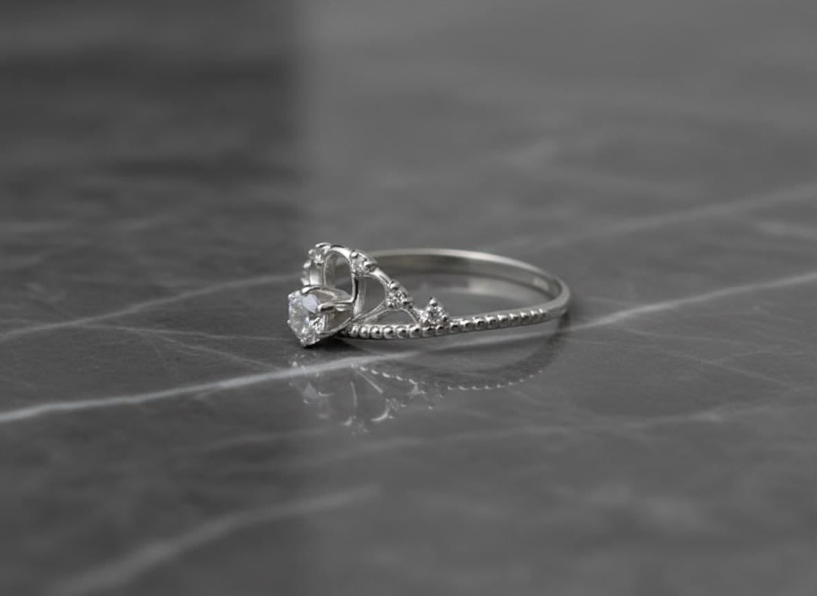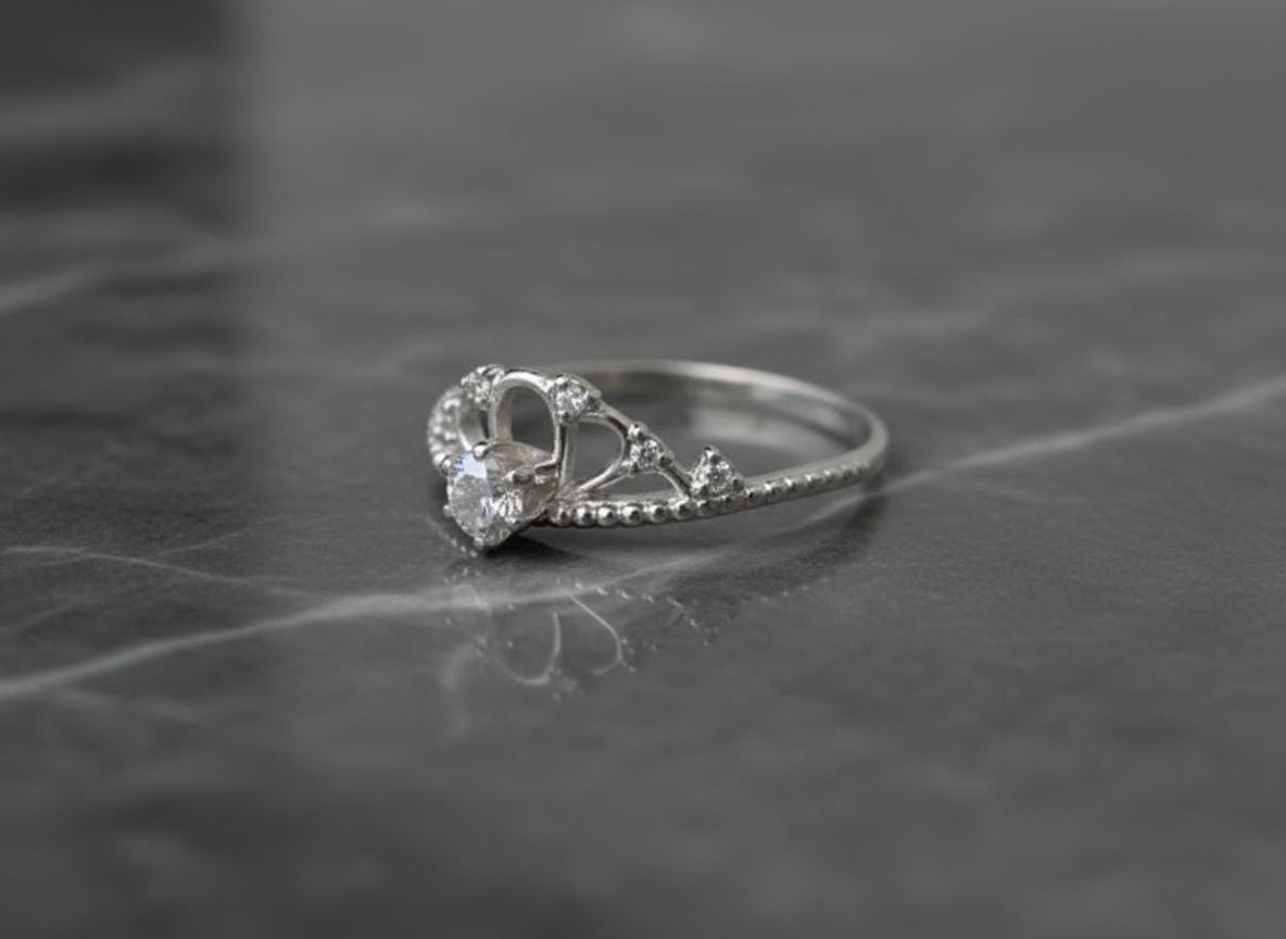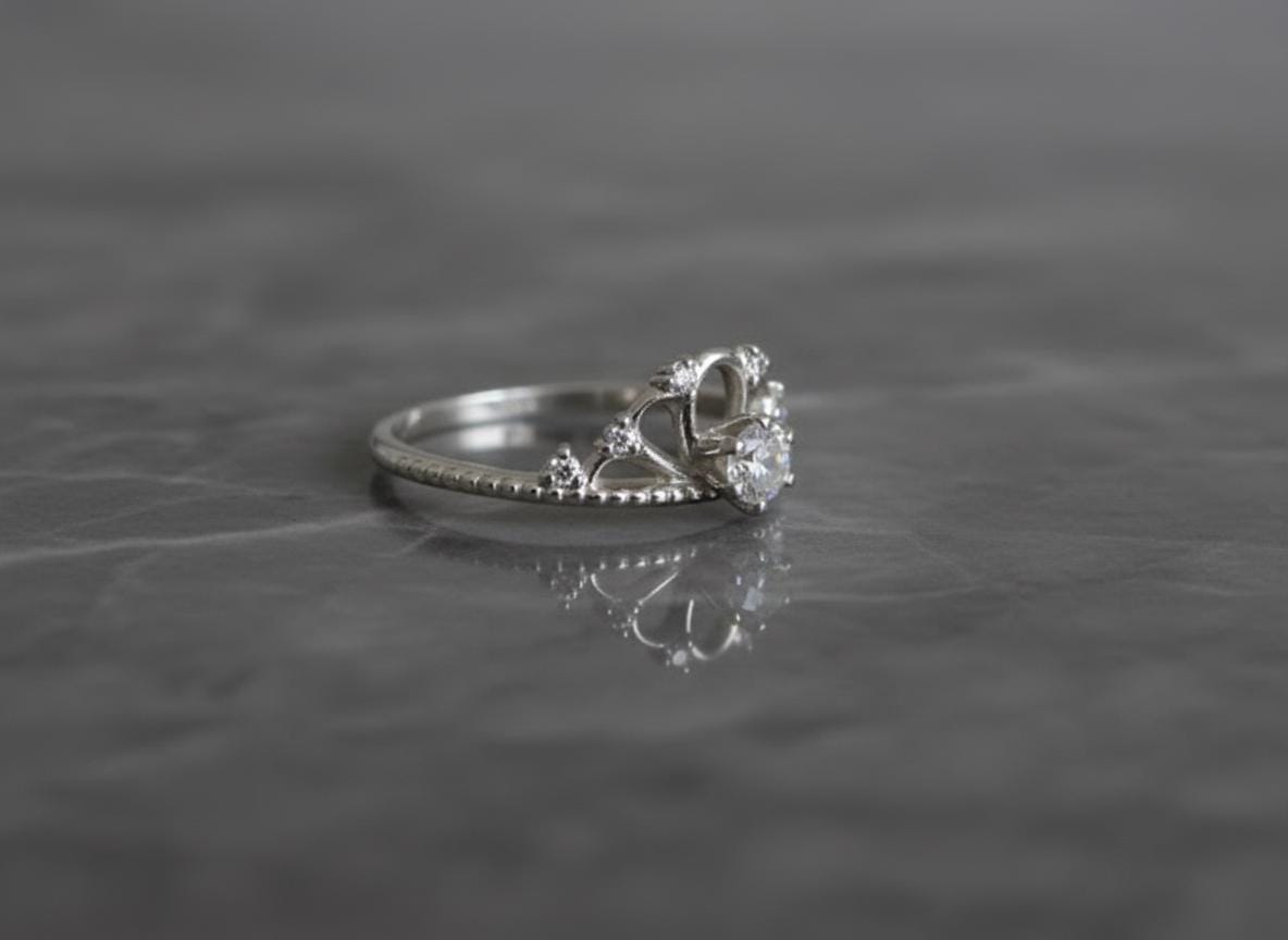 Feel like royalty every day with this sterling silver moissanite tiara ring. At its heart sits a brilliant round-cut moissanite, sparkling like a tiny diamond, framed by a delicate crown-inspired setting and milgrain detailing along the band. Crafted from high-polish 925 sterling silver, this dainty ring brings a touch of fairytale elegance to any look—perfect for stacking or wearing solo as a subtle statement.