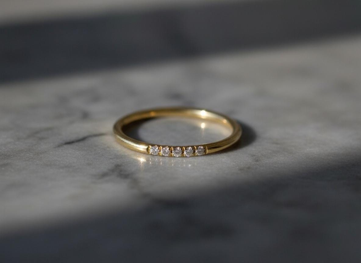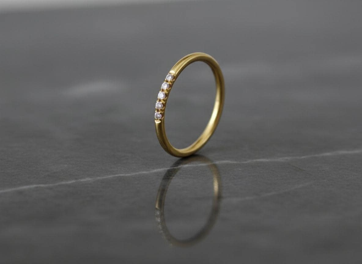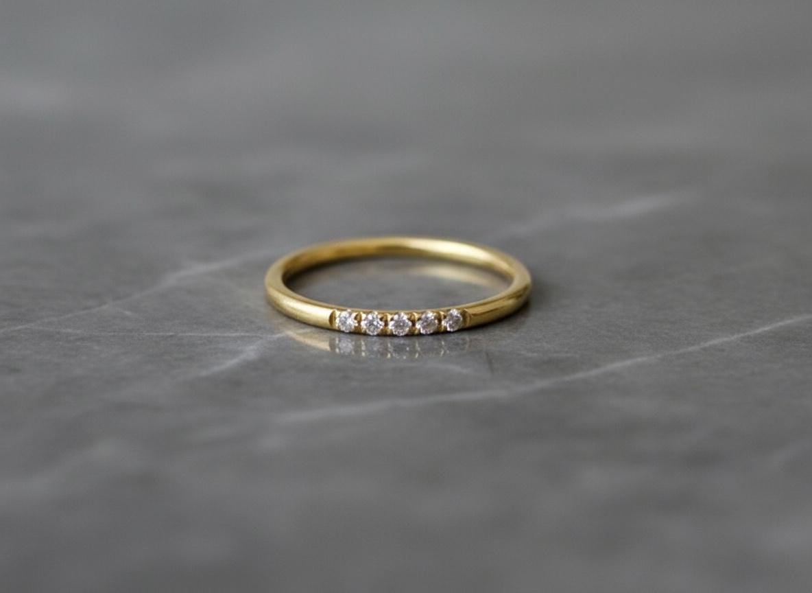 Style: Classic eternity-inspired five-stone setting, perfect for weddings or stacking