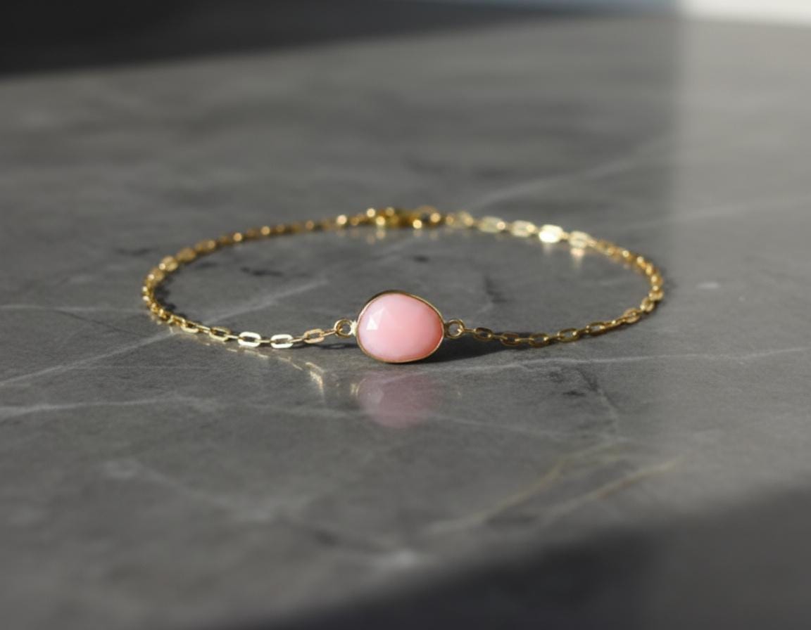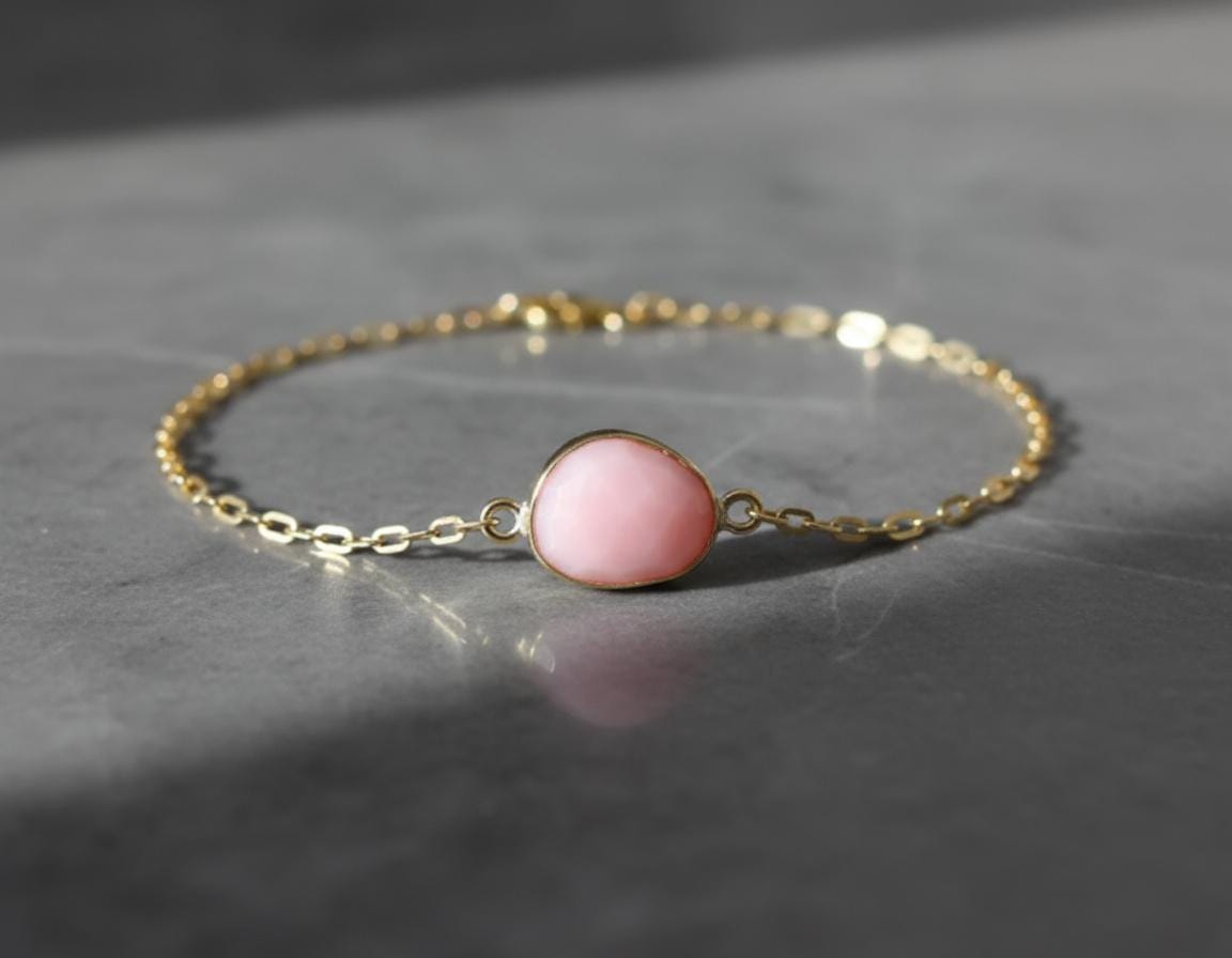 A timeless piece, ideal for birthdays, bridesmaids, or everyday elegance. Pink opal is also the October birthstone, symbolizing love and tranquility.