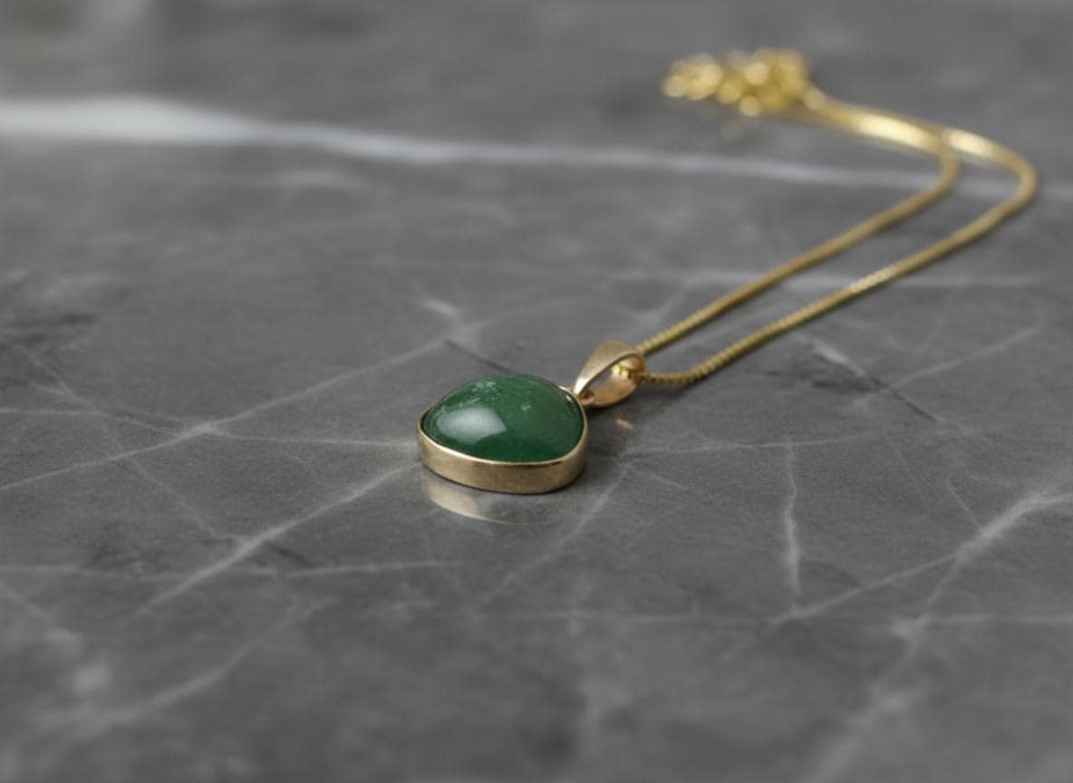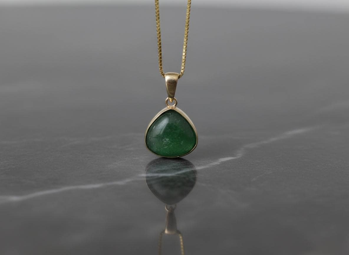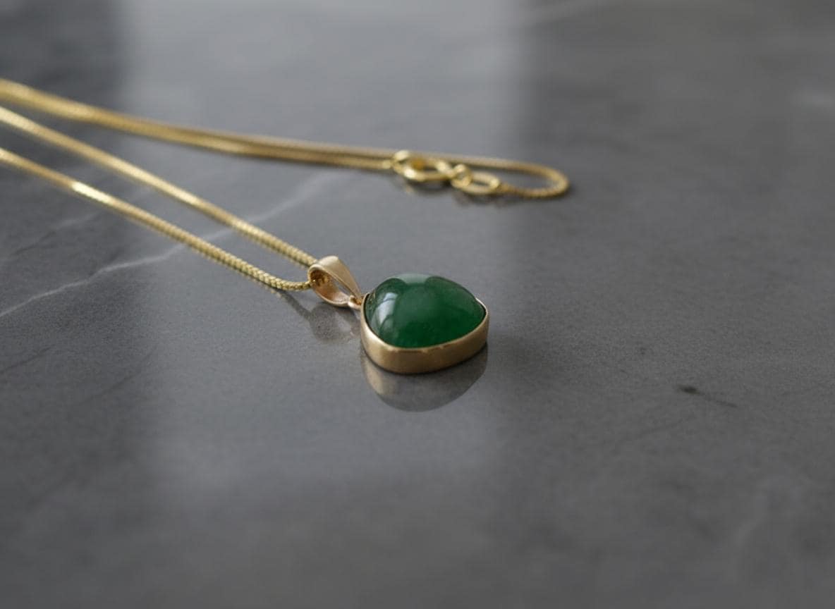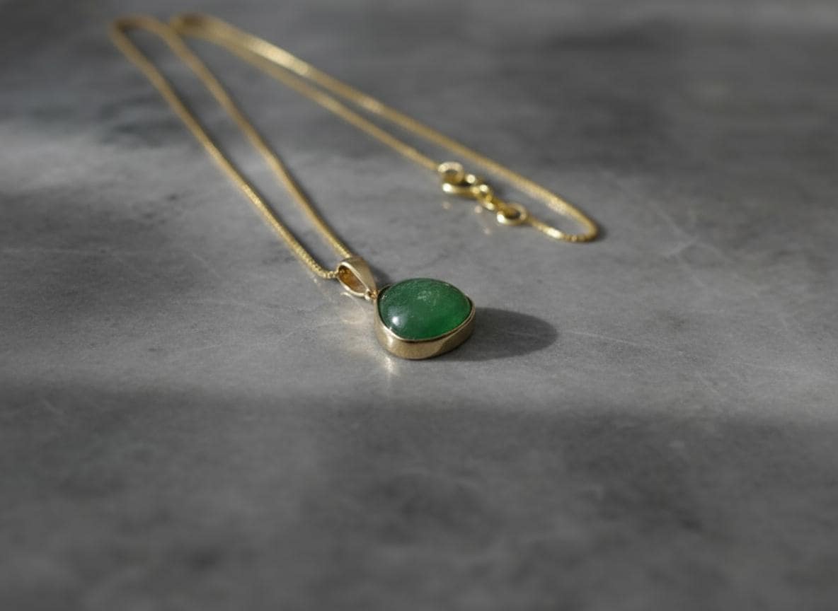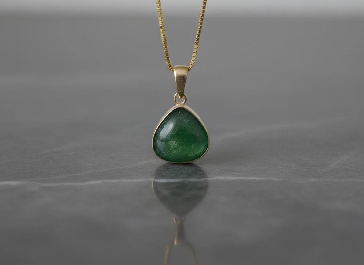 This elegant 14k gold necklace features a deep green tourmaline in a smooth bezel setting, cut in a soft cabochon style. The rich, earthy tone of the stone pairs beautifully with the warm gold chain, making it a meaningful gift or timeless everyday piece.