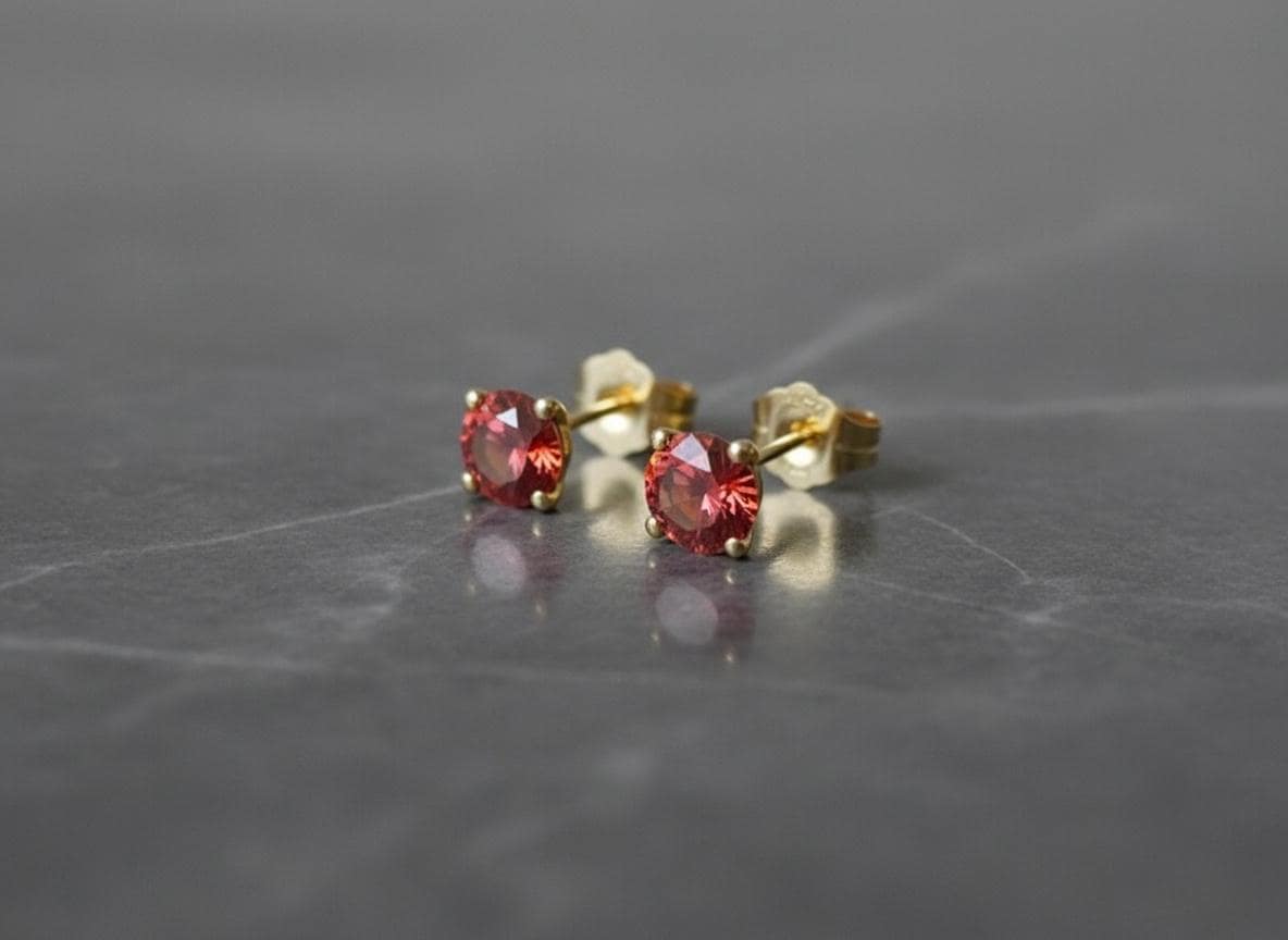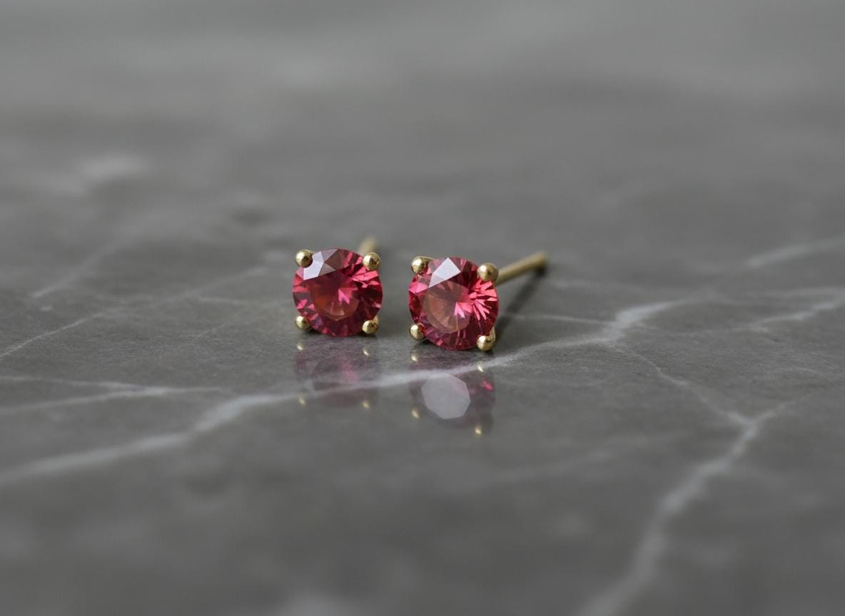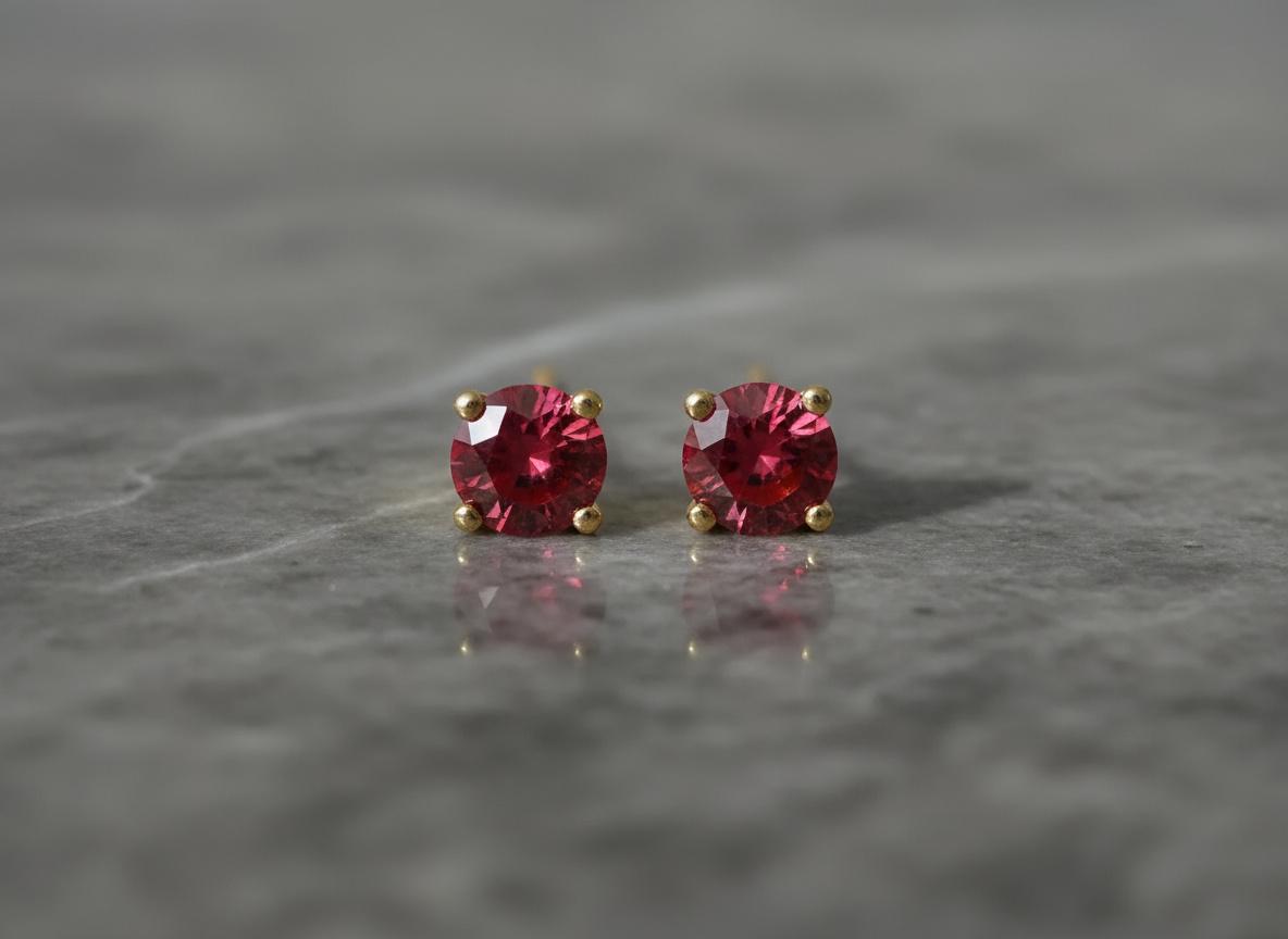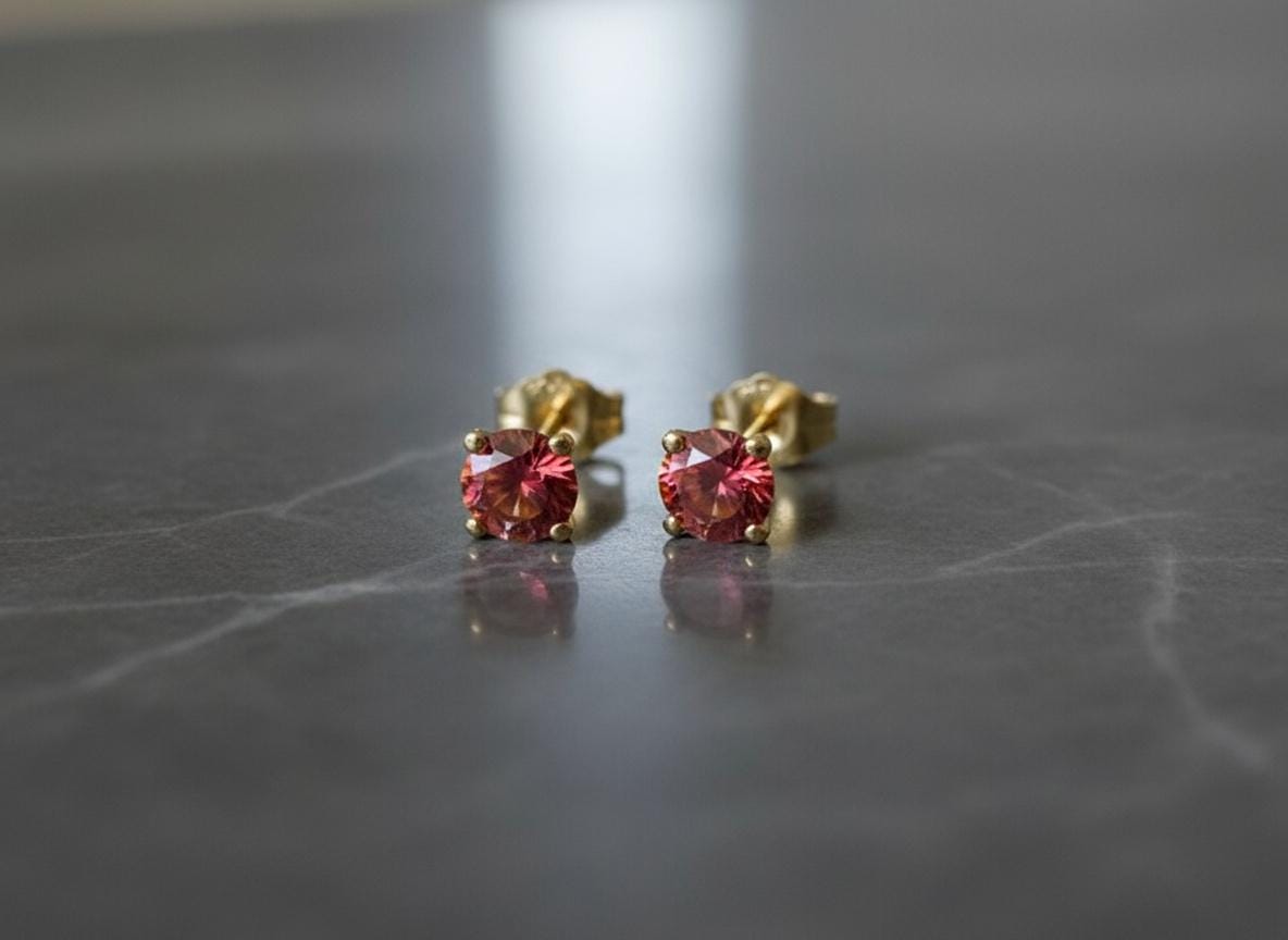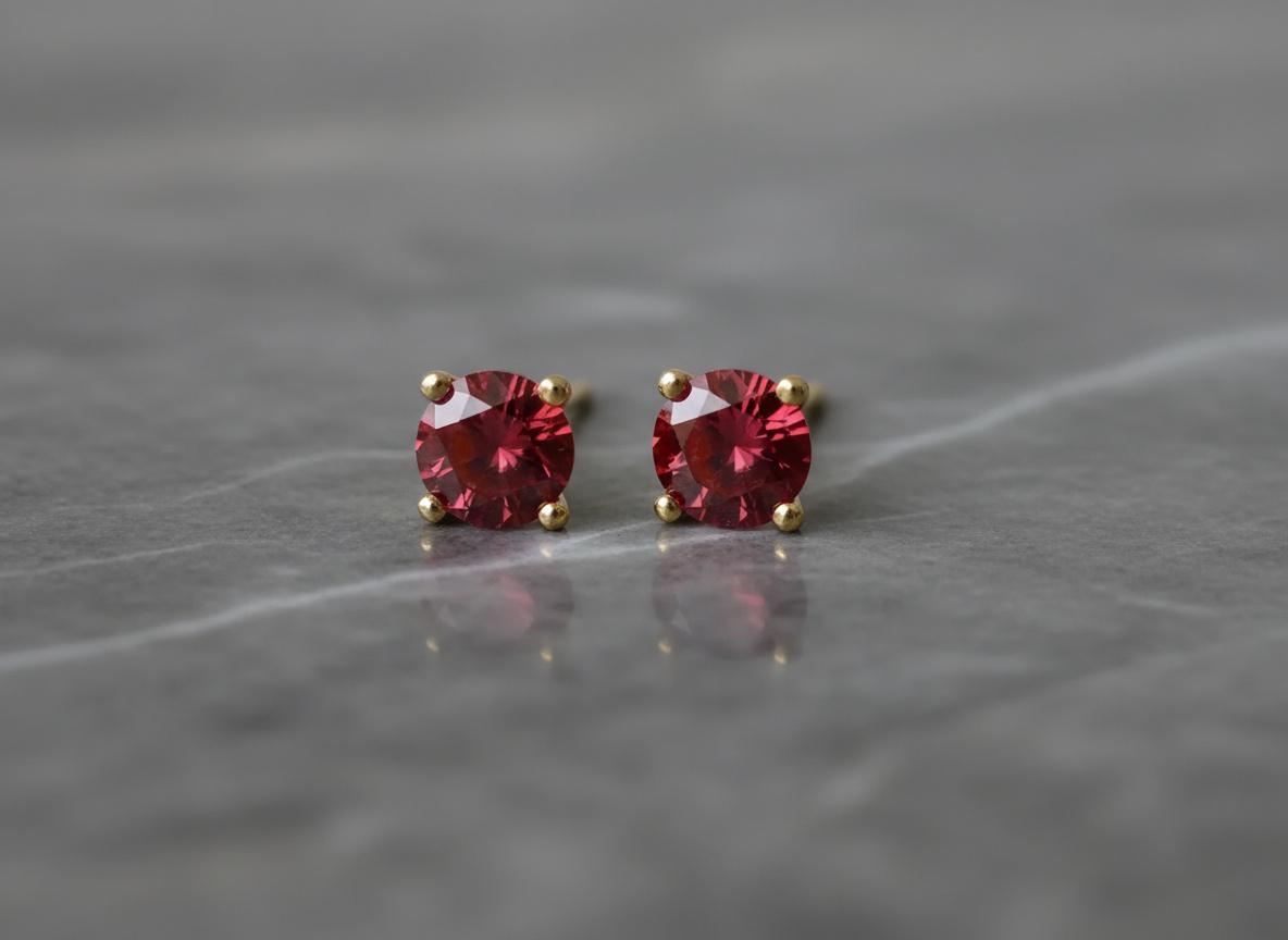 Handcrafted in solid 14k gold, each stone is precision-cut to maximize brilliance, creating a radiant, fiery sparkle that rivals even the finest natural gemstones. The minimalist solitaire design makes them perfect for everyday wear, while their rich, romantic color adds a unique twist to a classic style.