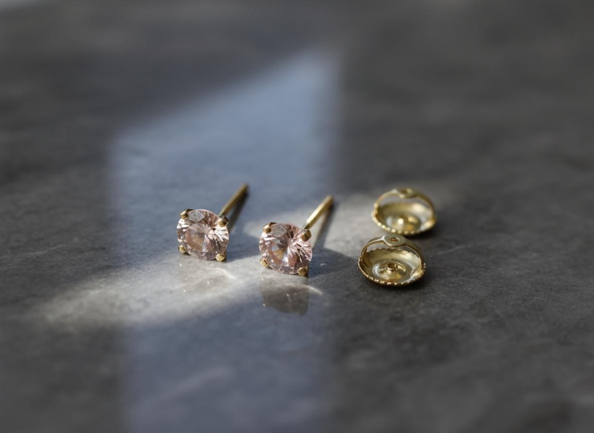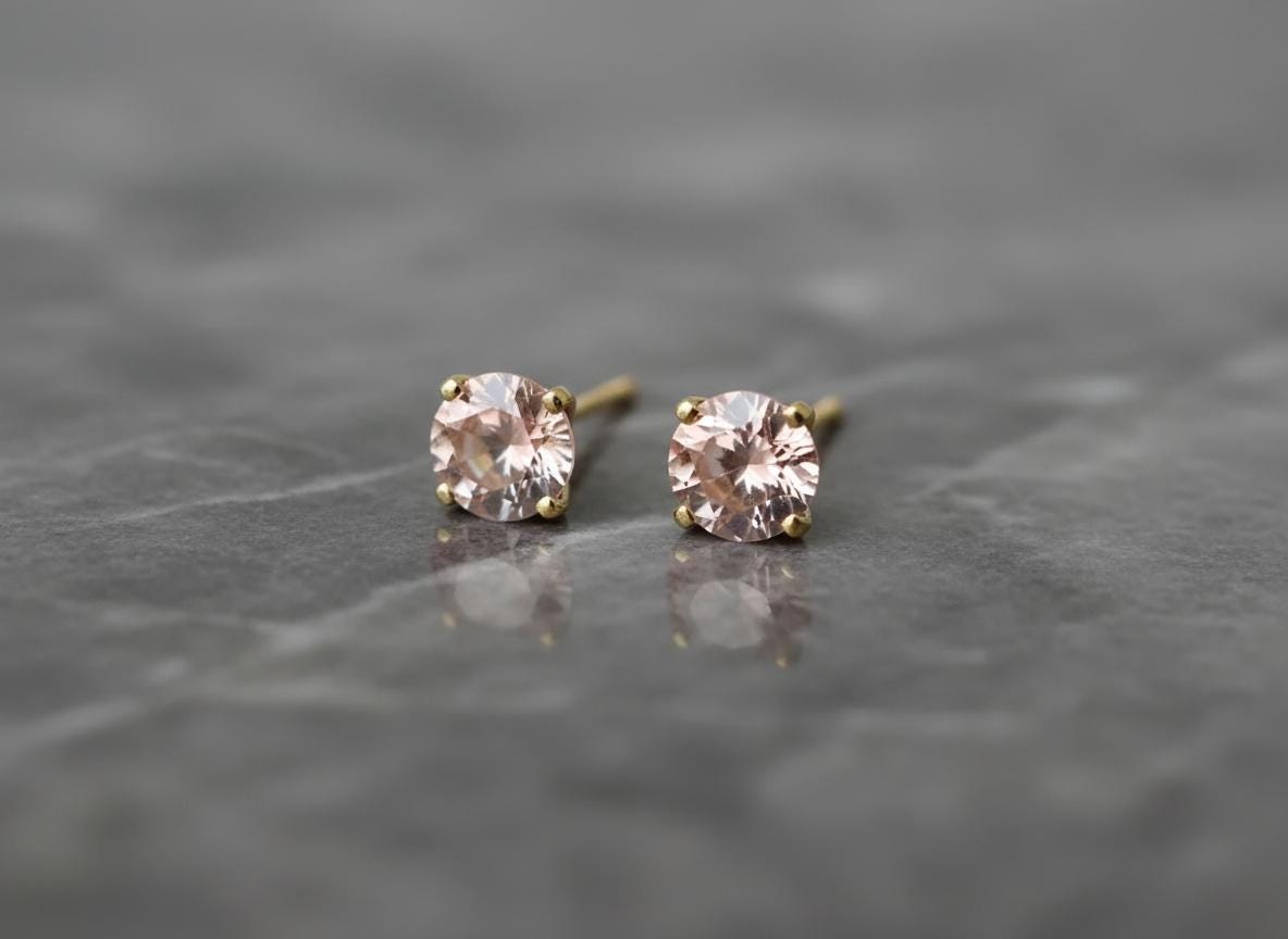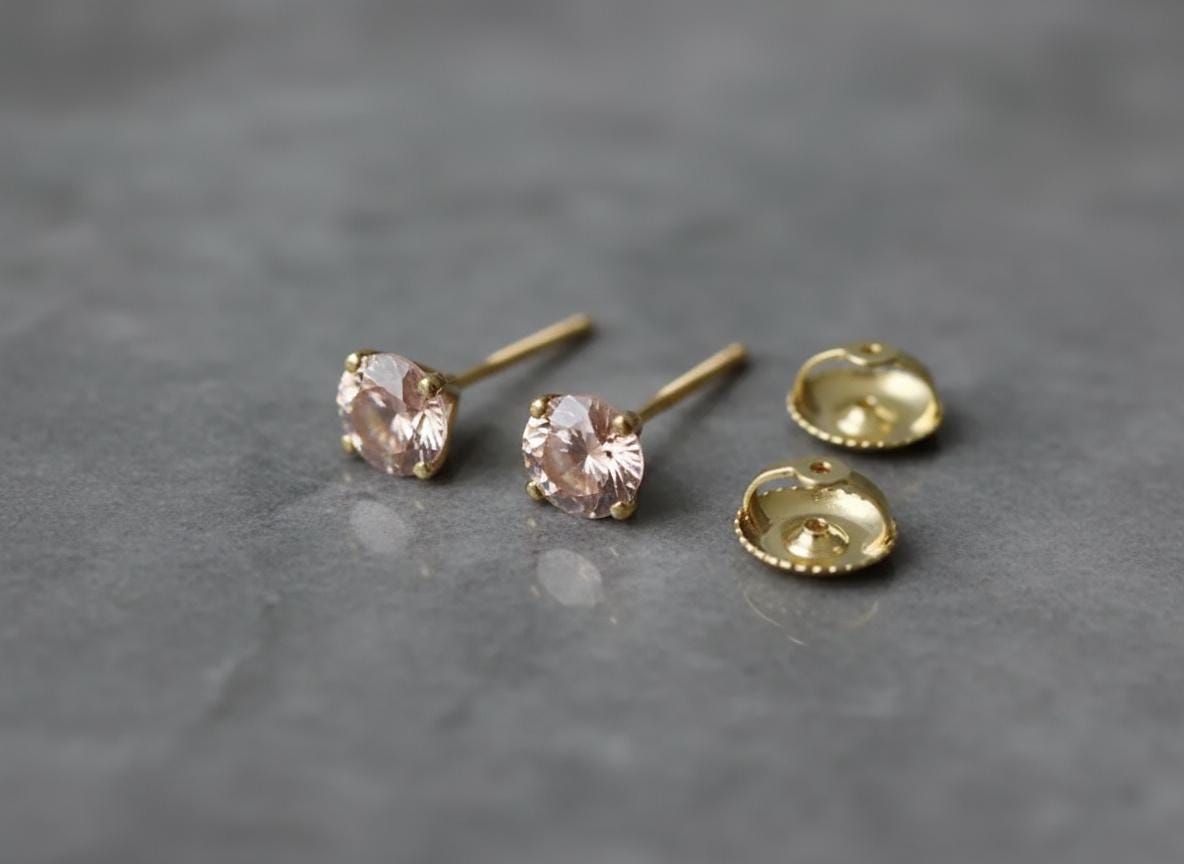 These 14k gold screw back earrings feature natural 5.5mm round morganite gemstones in a secure four-prong setting. Their soft peach-pink sparkle adds a touch of elegance, while the screw-back design ensures a comfortable and secure fit for everyday wear. Perfect as minimalist studs for daily outfits, romantic bridal jewelry, or a thoughtful gift for someone special. Handcrafted in solid 14k gold for lasting beauty and timeless style.