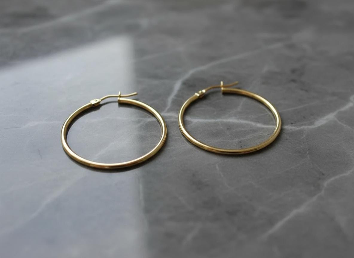 Timeless and versatile, these 28mm yellow gold hoop earrings are a must-have jewelry staple. With a sleek 1.5mm thickness, they offer a delicate, lightweight feel that’s perfect for all-day comfort while still adding a touch of classic elegance.