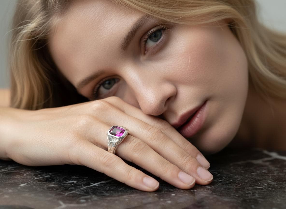 Each ring is individually crafted, making it one of a kind. The bold pink hue of topaz symbolizes joy, confidence, and emotional healing — a perfect balance of strength and grace.