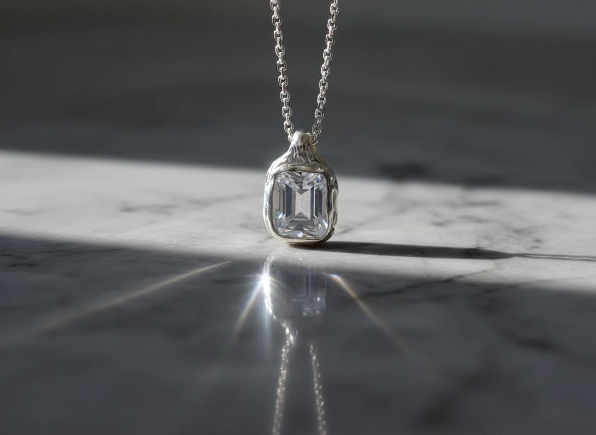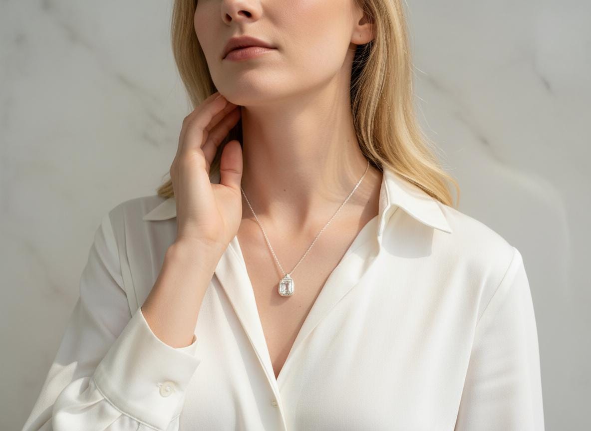 Suspended from a fine sterling silver chain, the pendant captures the light with every movement — a perfect piece for both everyday elegance and special occasions.