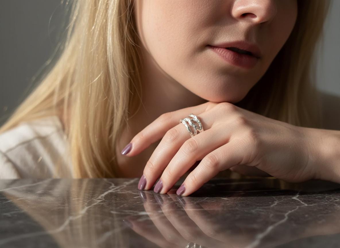 This ring celebrates the beauty of imperfection — modern, sculptural, and effortlessly elegant. It pairs beautifully with minimalist outfits or layered with other silver pieces for a bolder look.