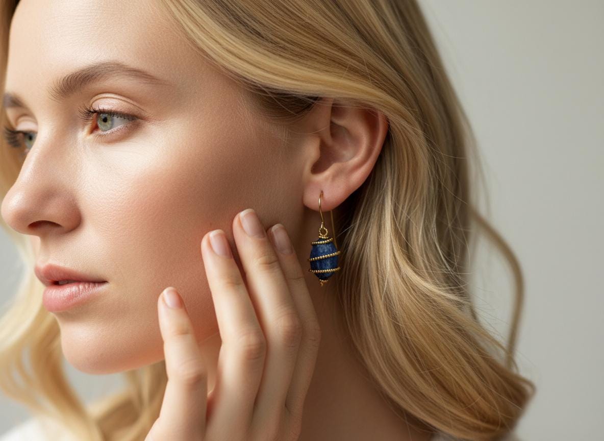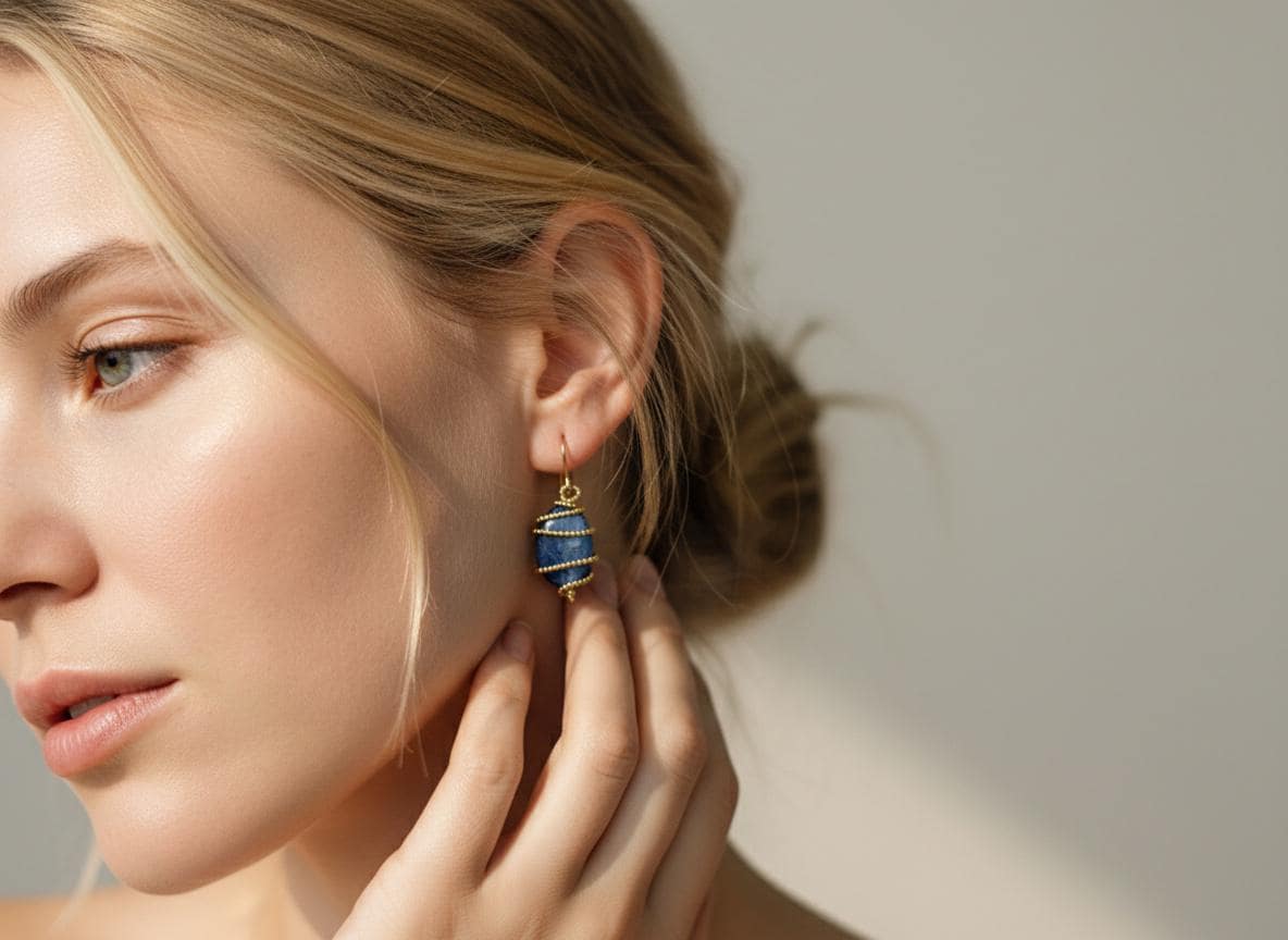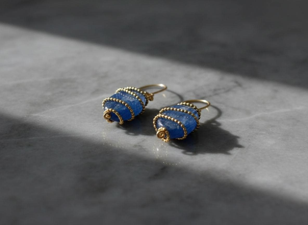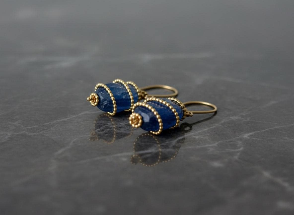 These stunning gold filled kyanite earrings combine the deep, mesmerizing beauty of natural blue kyanite gemstones with the timeless elegance of gold. Each oval kyanite, measuring 10x14mm, is hand-wrapped with delicate gold filled beaded wire, creating a unique spiral design that catches the light beautifully. The lightweight and comfortable French hook style makes them perfect for both everyday wear and special occasions.