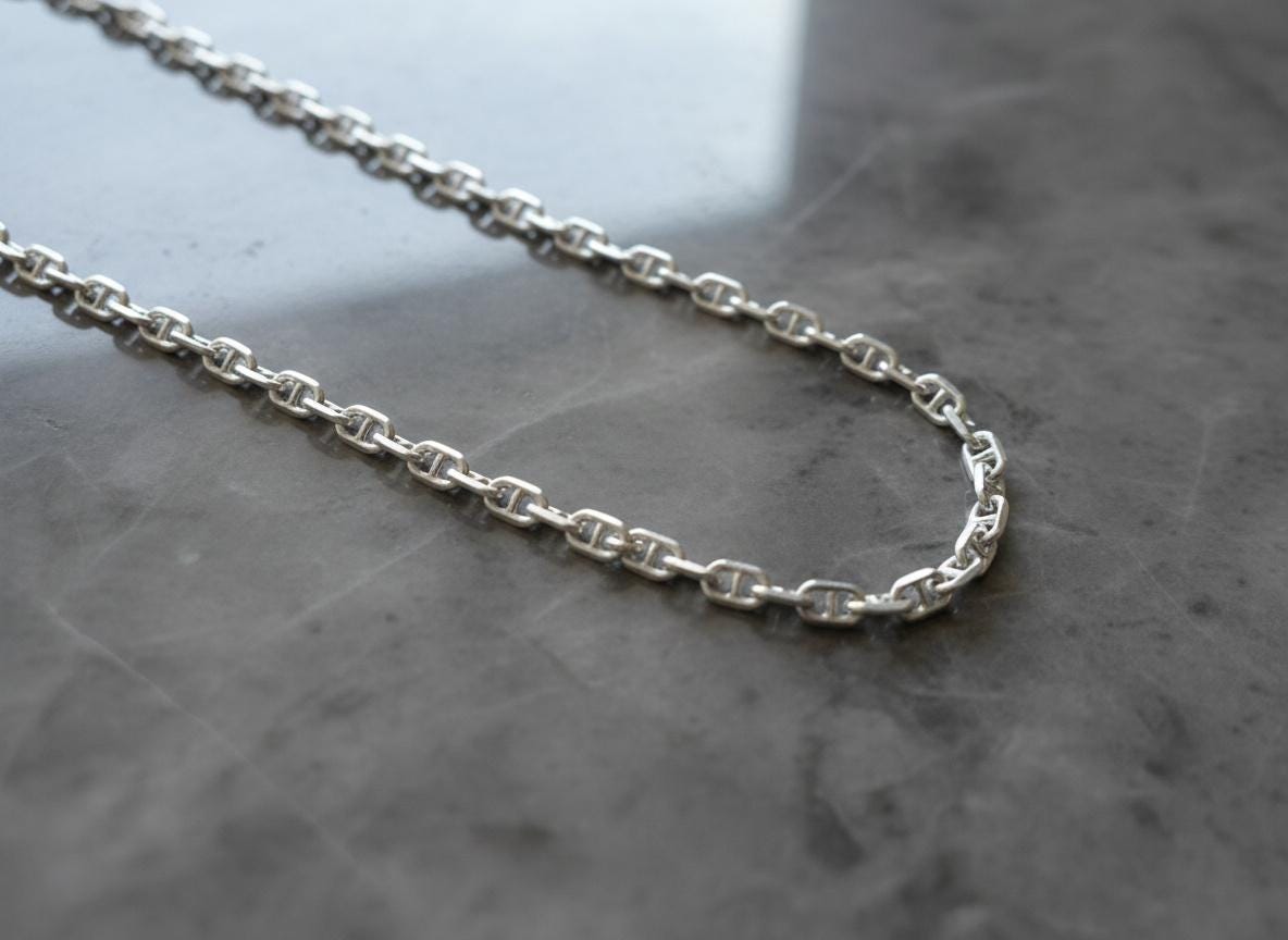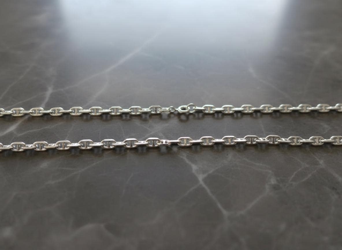 This elegant sterling silver chain features a 3.8mm anchor-link design, known for its durability, classic style, and beautiful shine. At 45cm (18"), it’s the perfect everyday length — ideal for wearing on its own or paired with your favorite pendant.