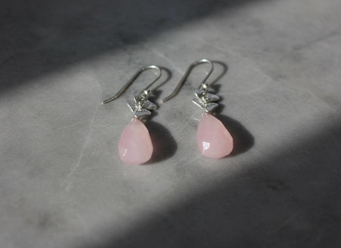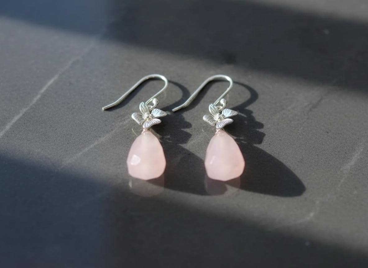 • Gemstone: Natural Rose Quartz (faceted teardrop)