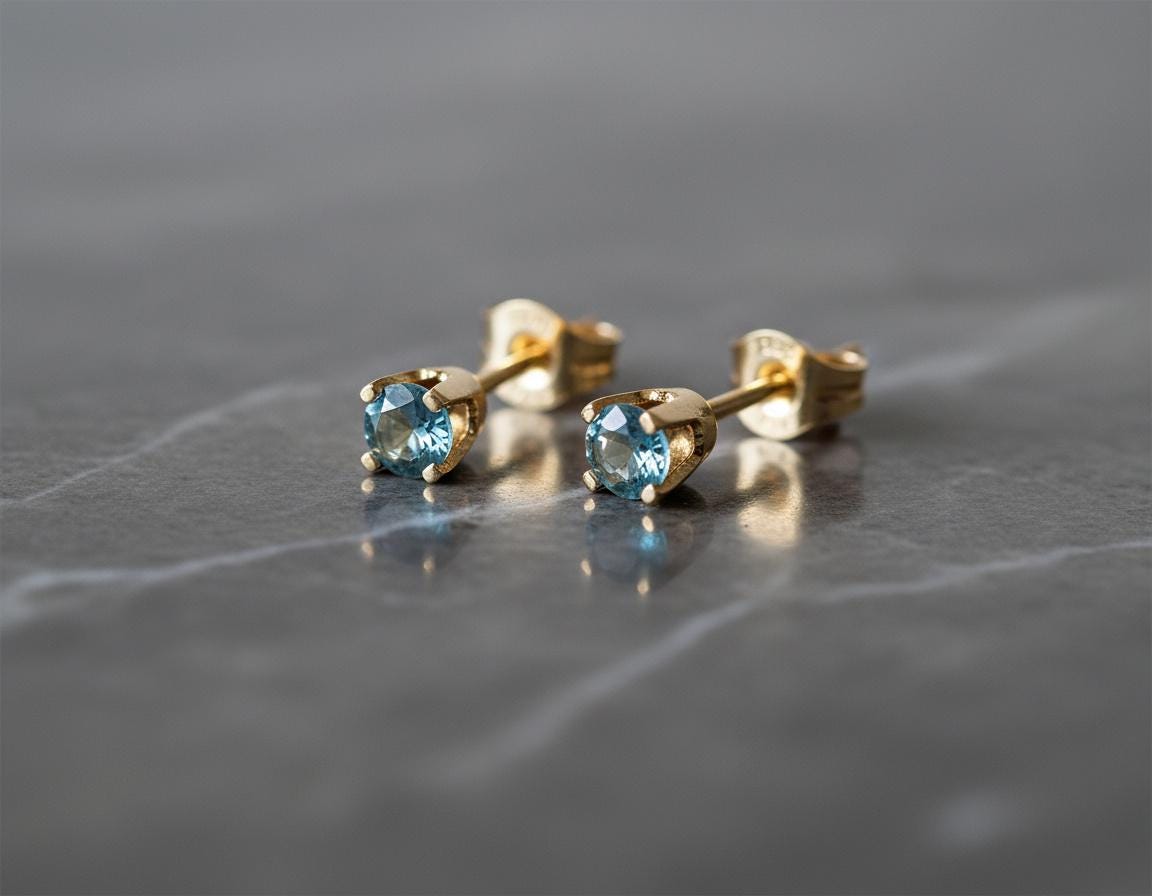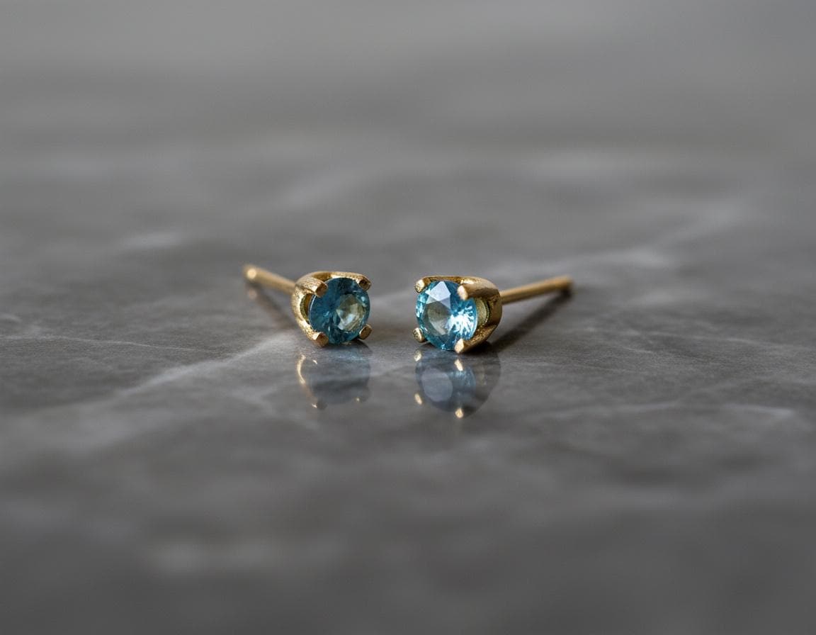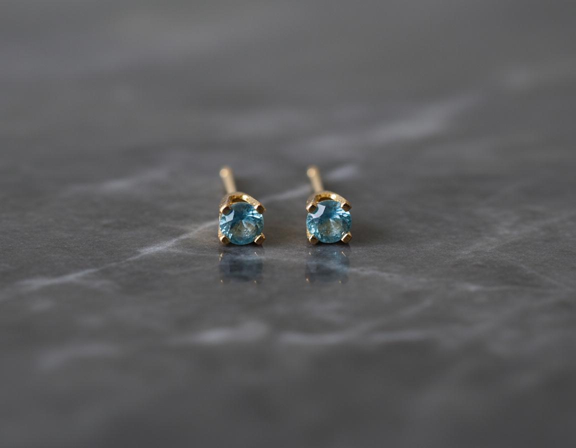Tiny and elegant 14k gold stud earrings with 3mm apatite stones. Will make a great gift for your loved ones or for yourself! Even though they are small, the intense, deep blue color of these gorgeous stones will make these earrings stand out. 14k gold ear nuts are included with these earrings.