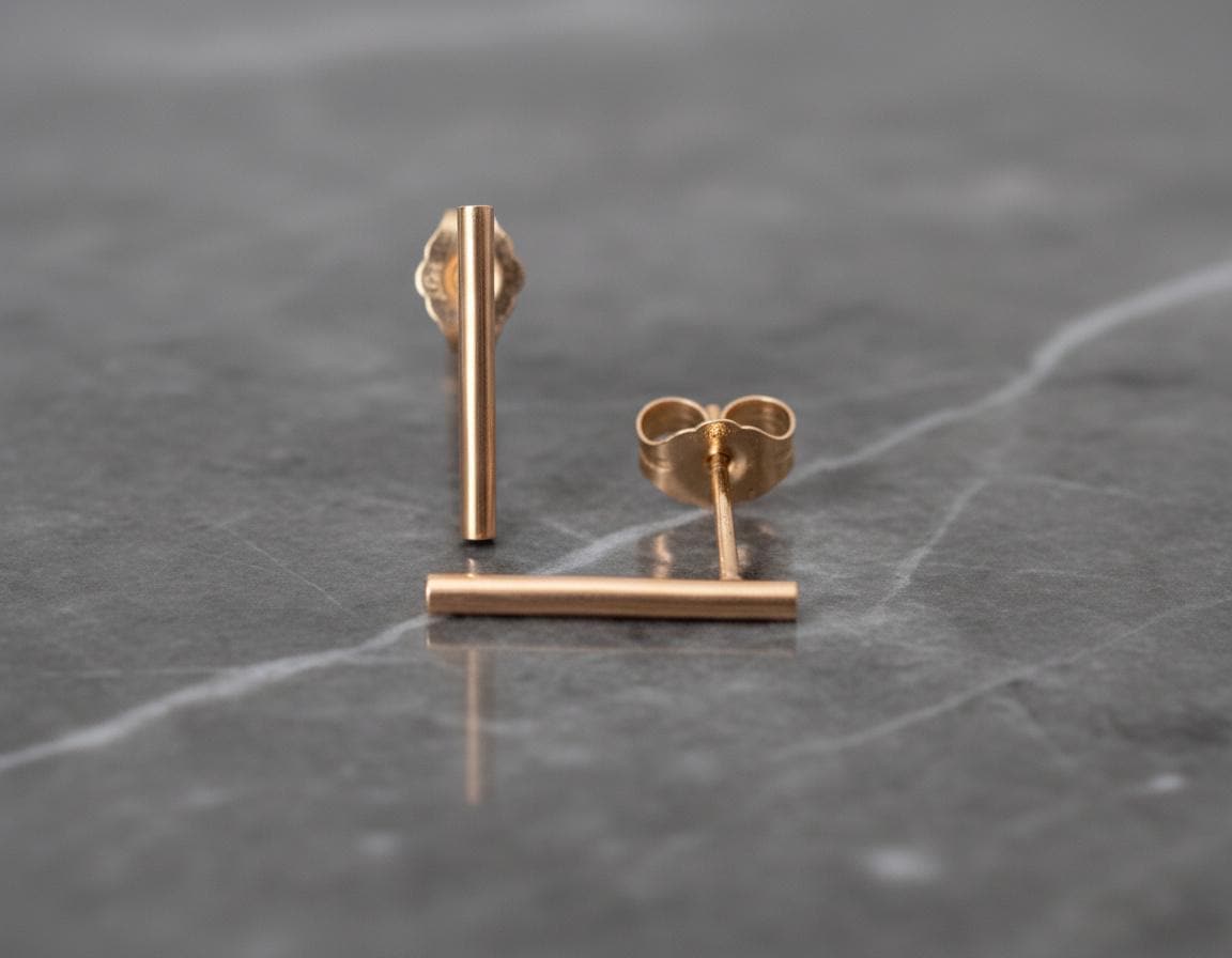 Elegant and unique 14k rose gold stud earrings. Will make a great gift for your loved ones or for yourself! 14k gold ear nuts are included with these earrings.
