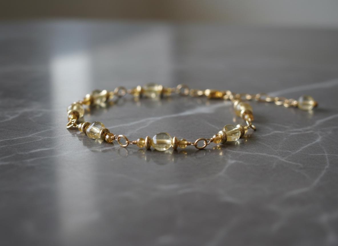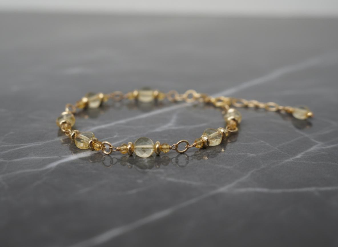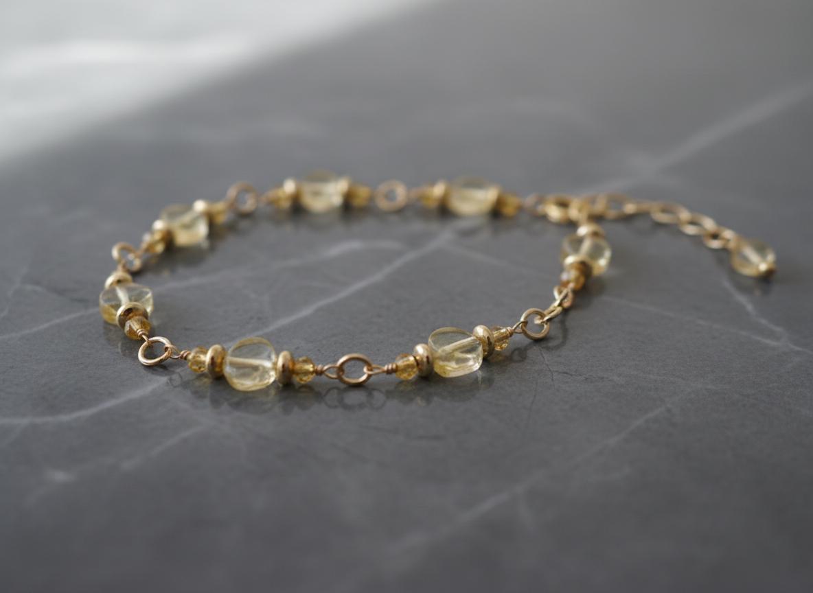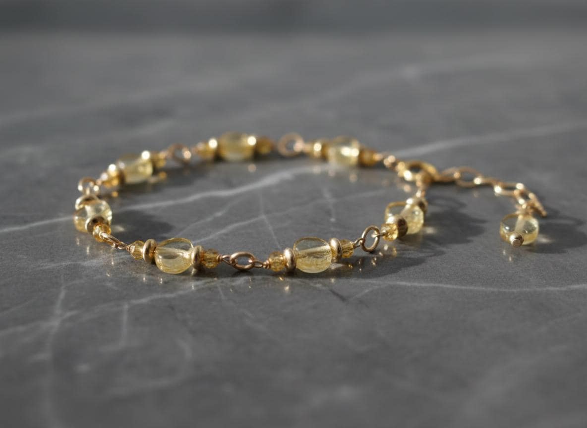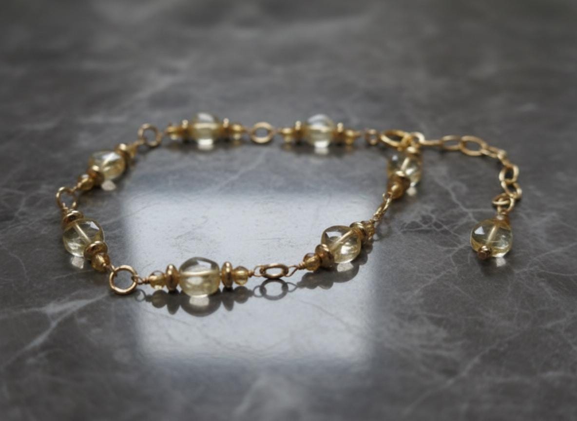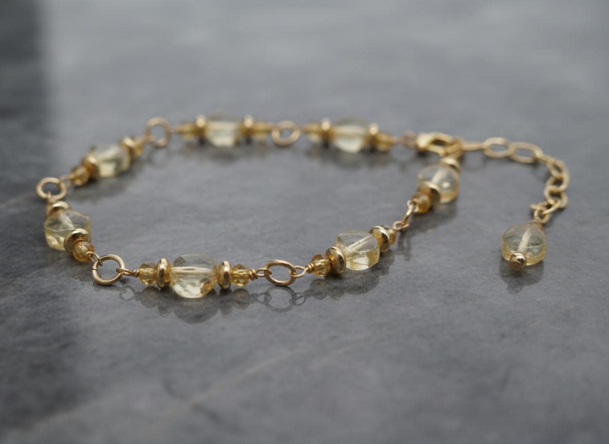 Each citrine bead is individually hand-wrapped in solid 14k gold, giving the bracelet a luxurious finish and a naturally fluid movement. The adjustable length makes it easy to layer with other bracelets or wear as a subtle solo statement.