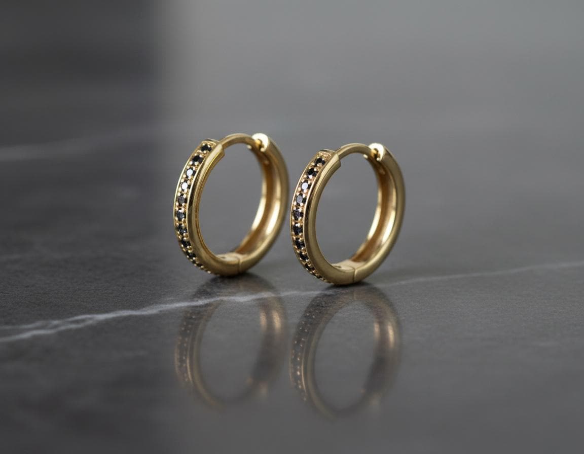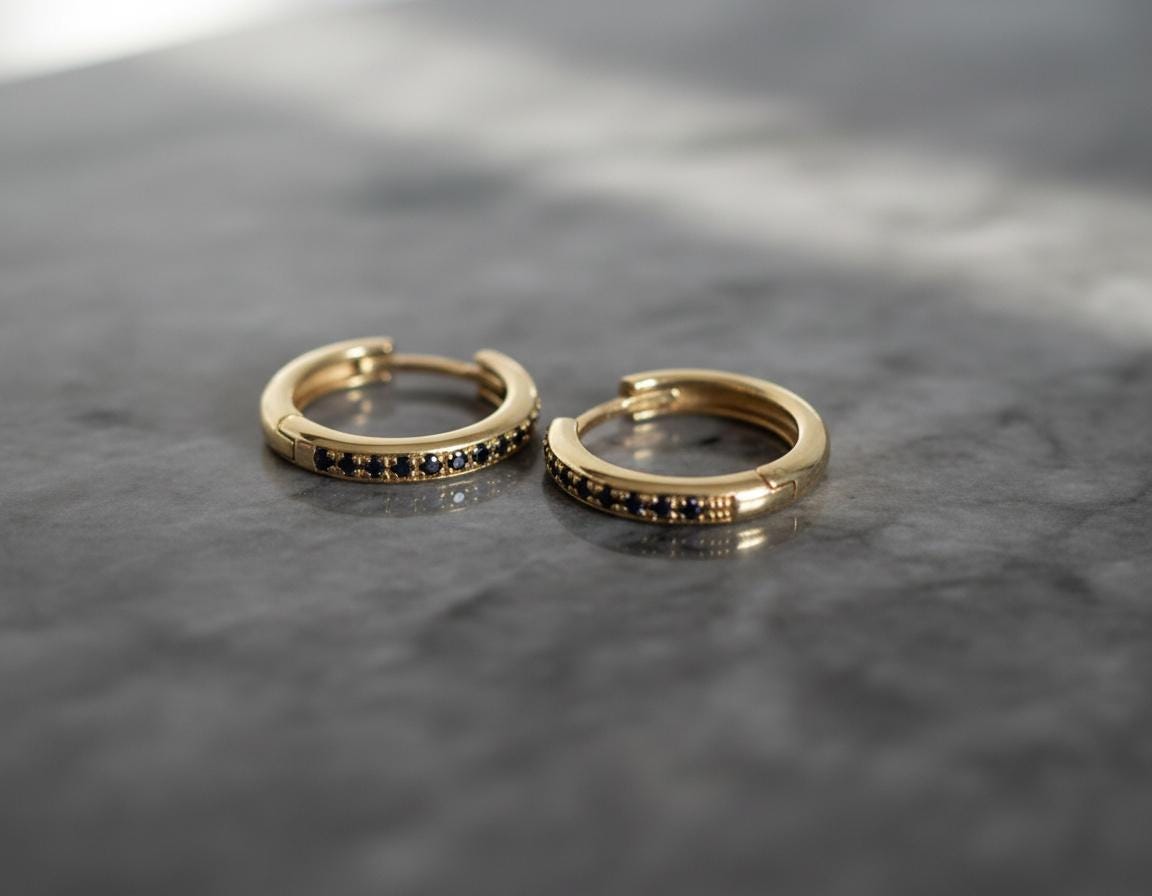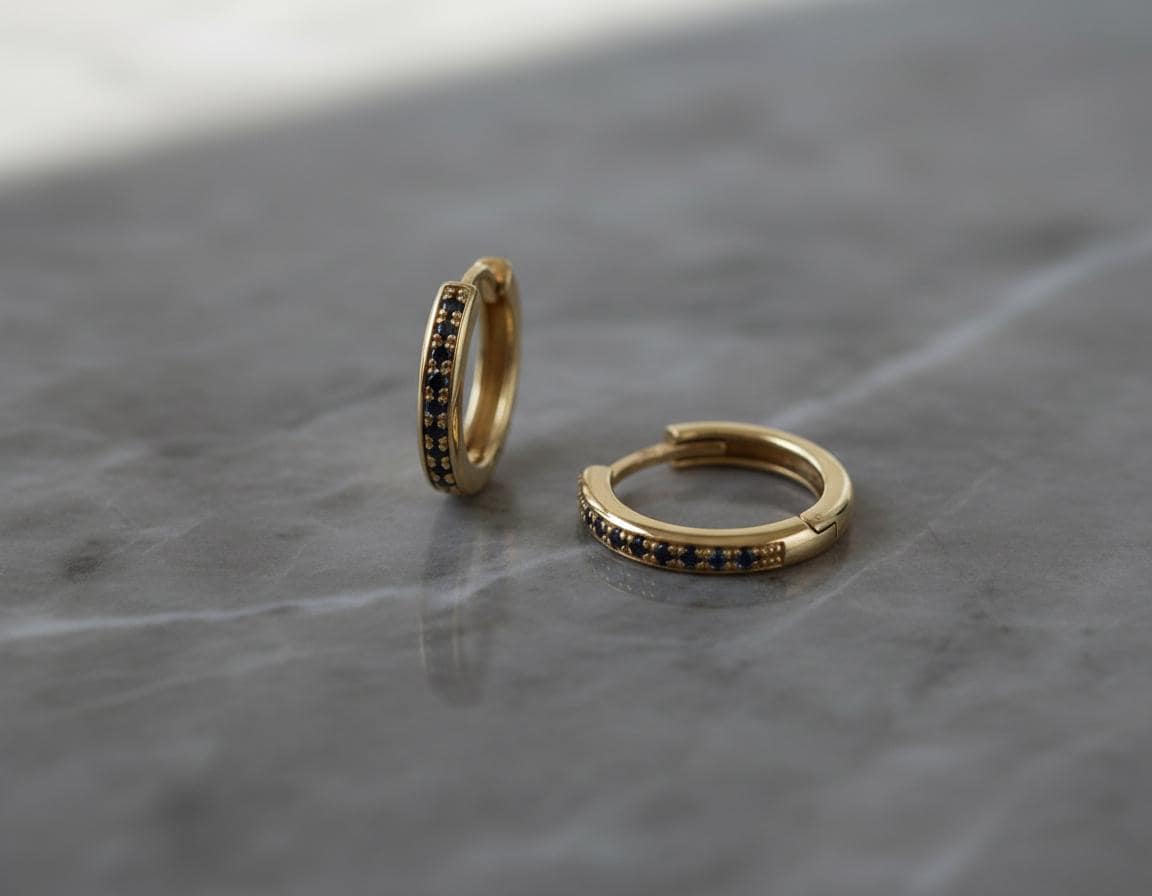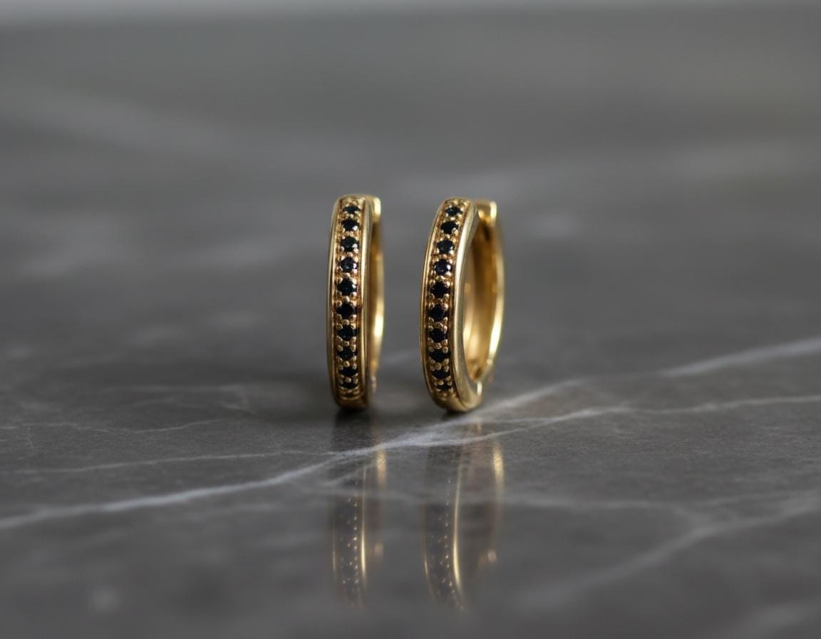 Elegant with a modern edge — these 14K gold hoop earrings are set with 10 natural black diamonds on each earring, adding subtle sparkle and sophistication. The 12mm hoops are the perfect size for everyday wear, offering a refined touch that transitions effortlessly from day to night.